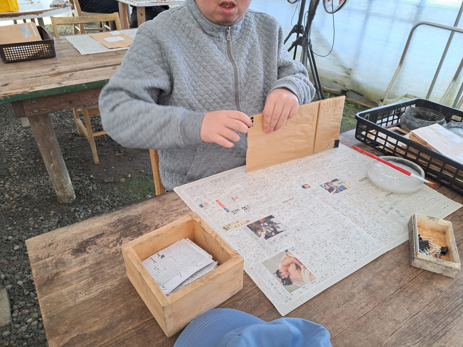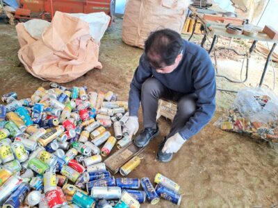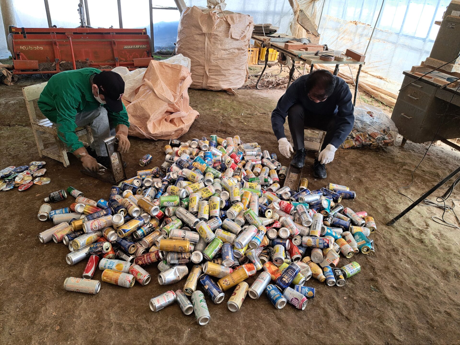 - 隣のハウスでは空き缶組が作業~