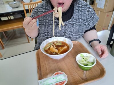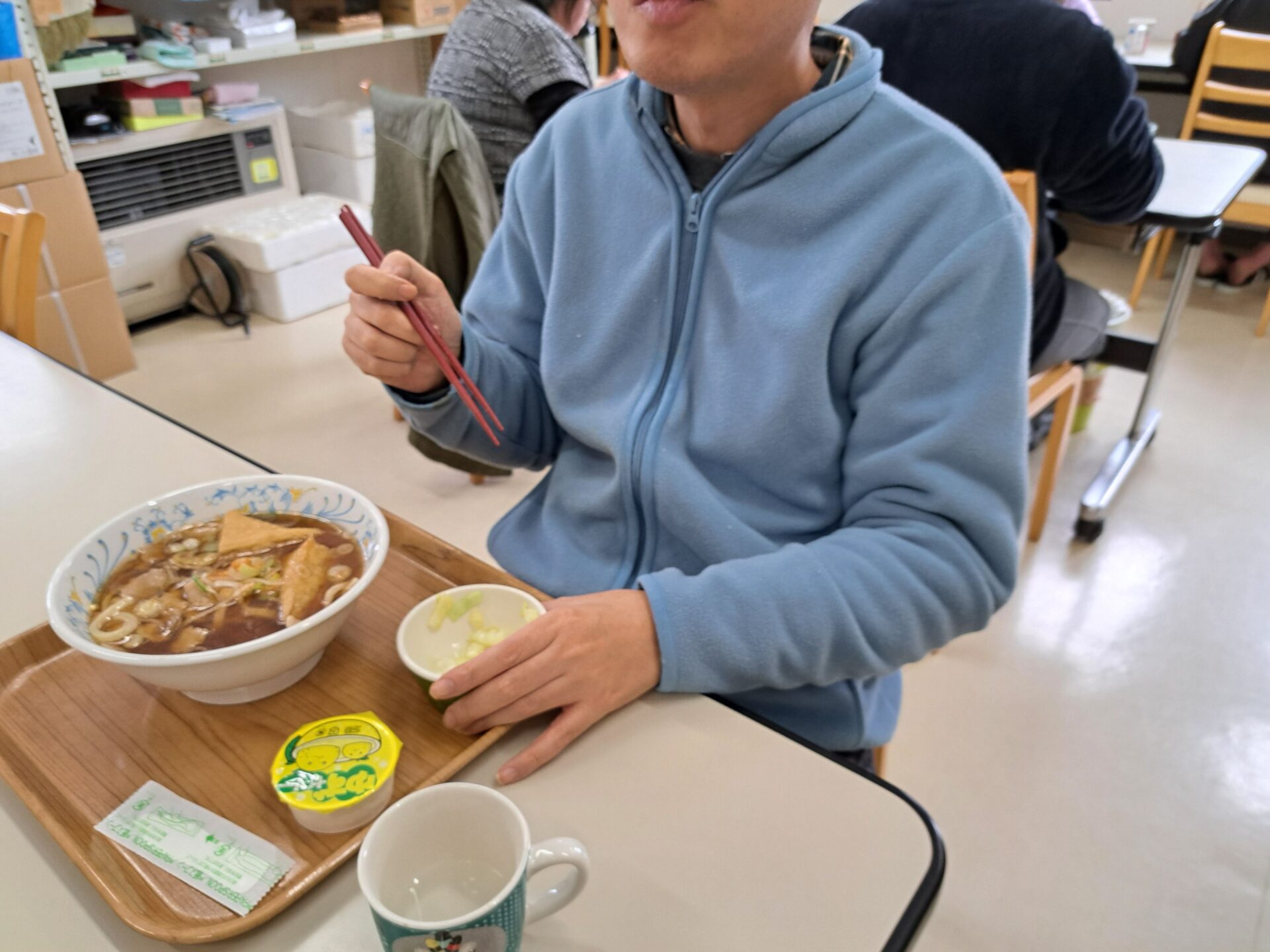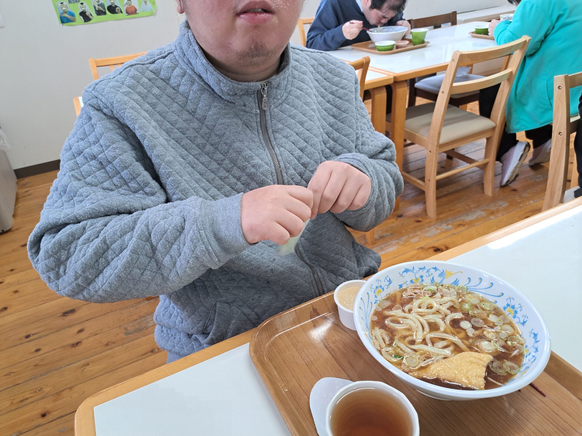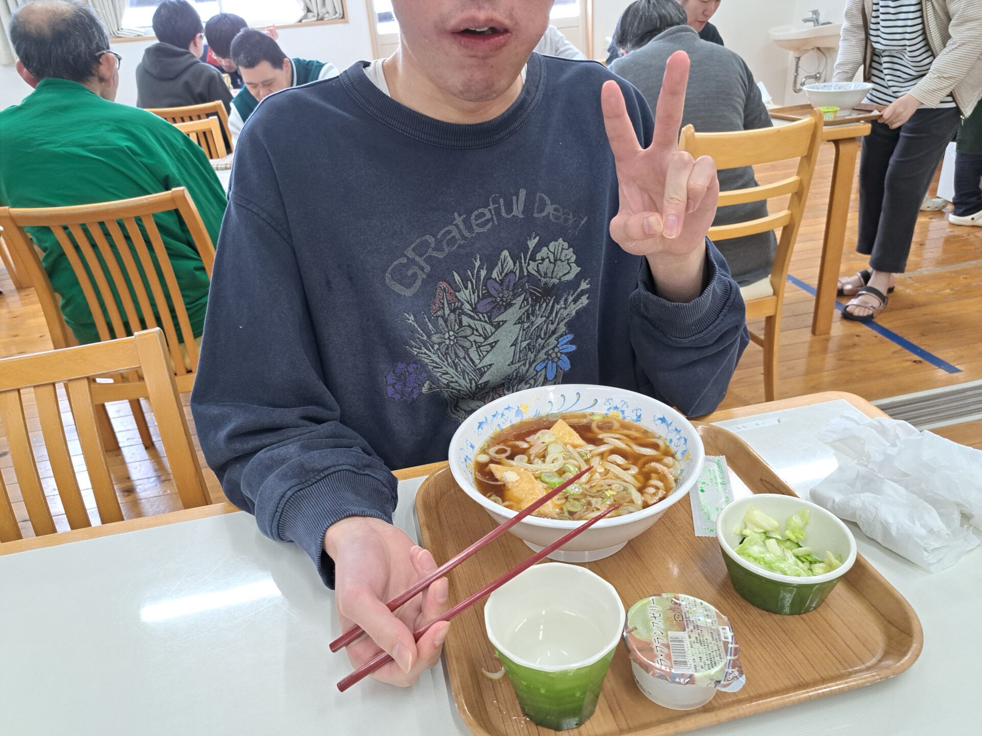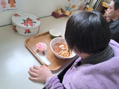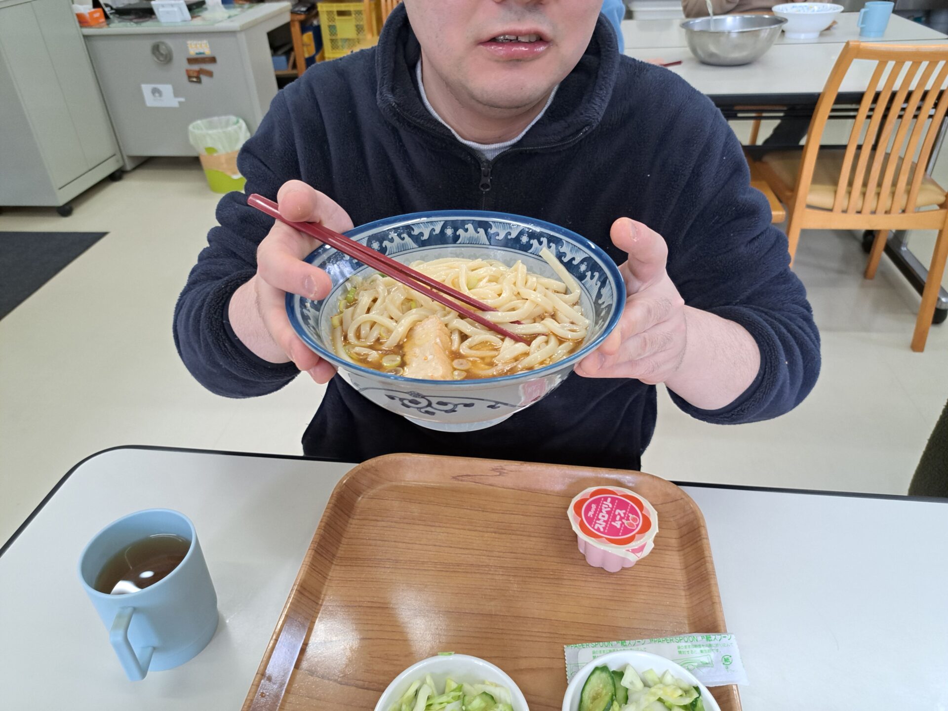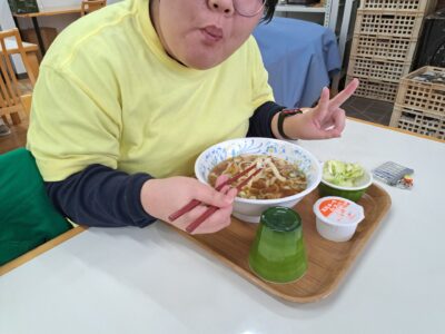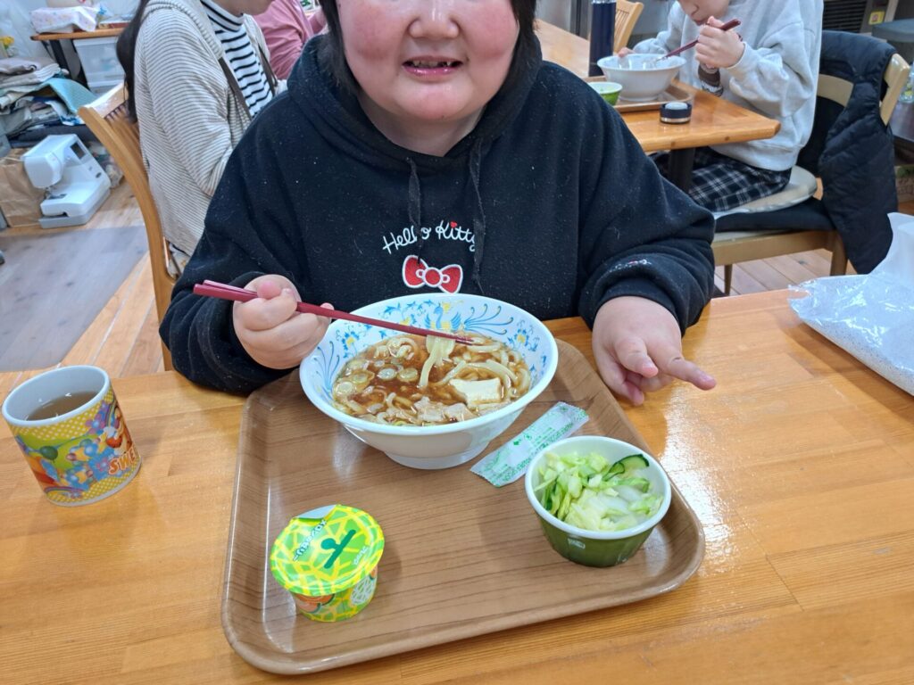 今日の給食はうどんですよ~♪!(^^)!
