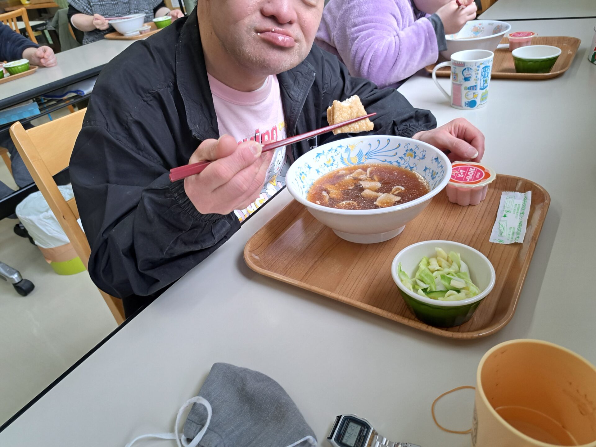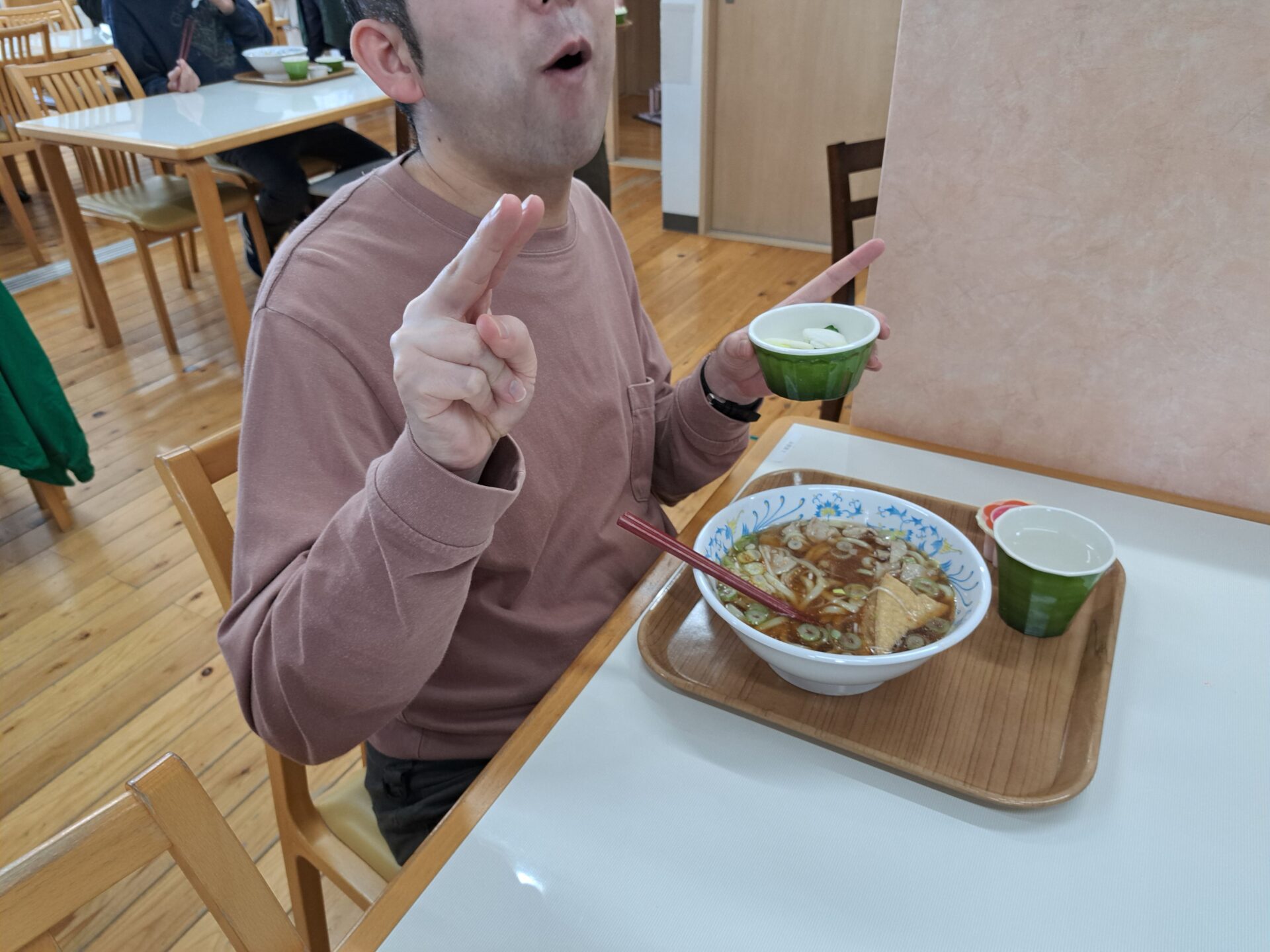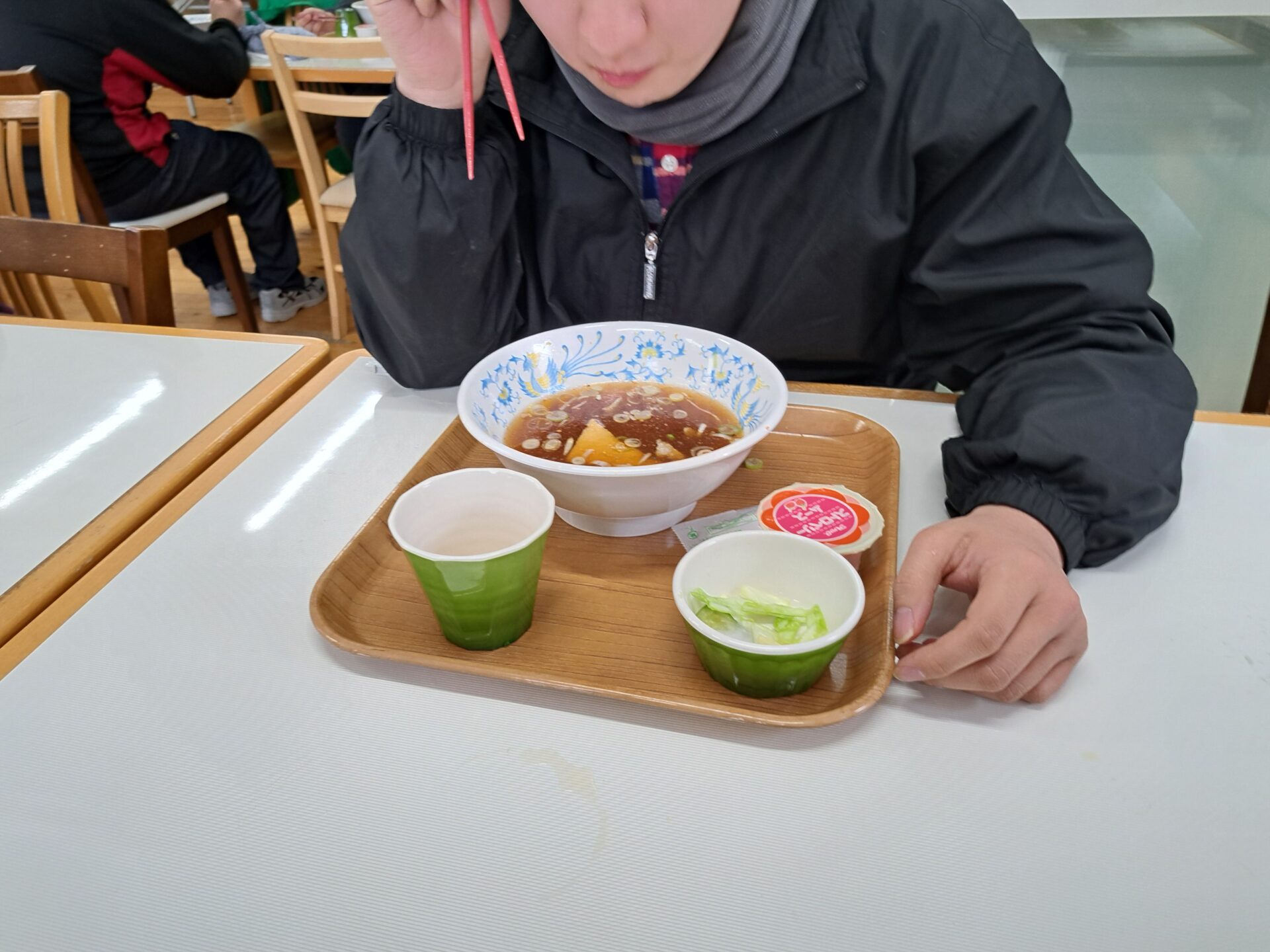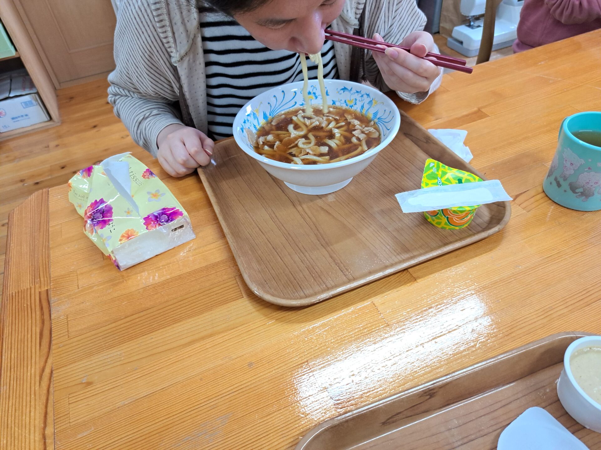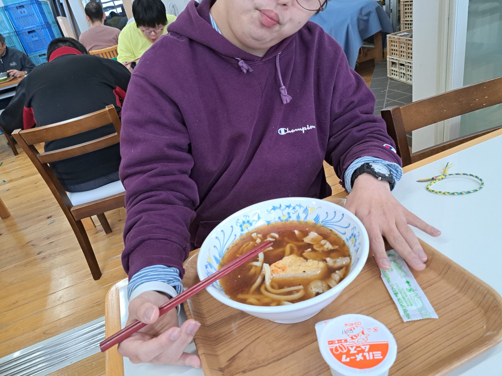 今日の給食はうどんですよ~♪!(^^)!