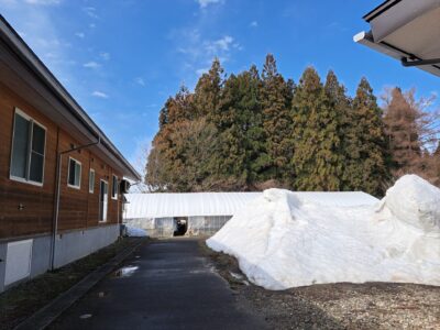 - ハウスの雪山も小さくなってる~♪