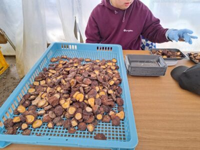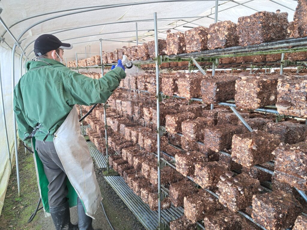 ハウスでは加工班の主張組の利用者さんが週1回の椎茸作業がんばっていました~(*^-^*)