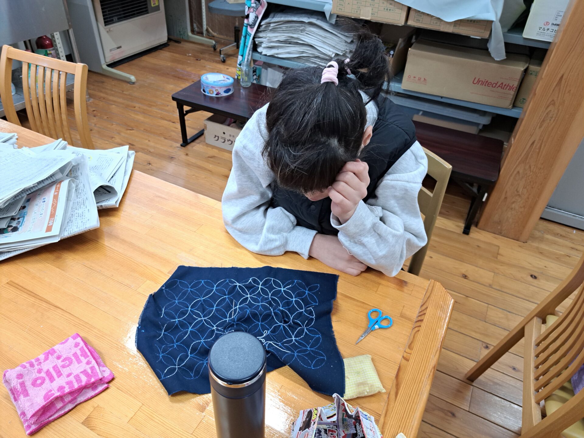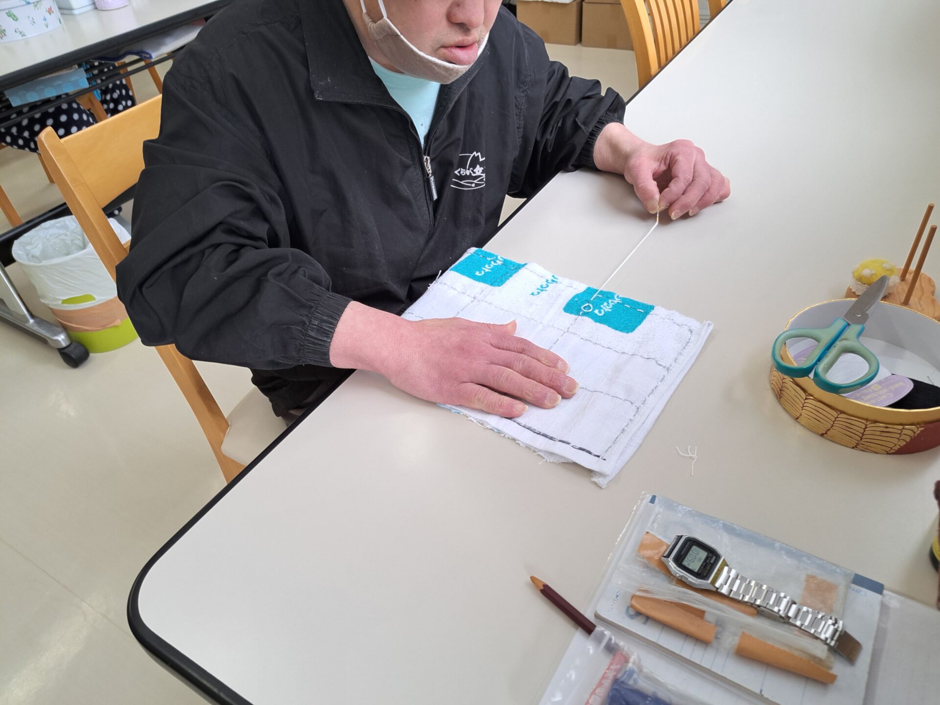 裁縫班は、先週乾かしたエプロンを畳むところからスタート♪