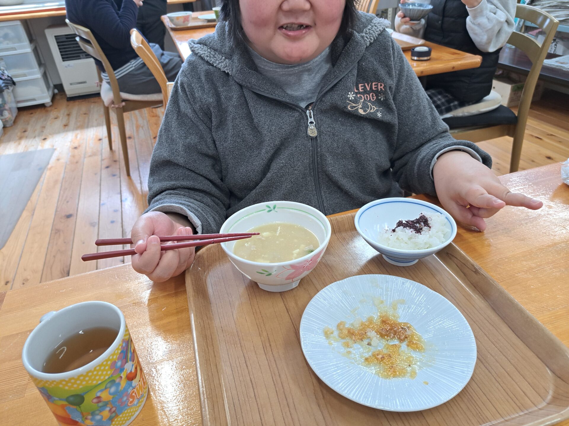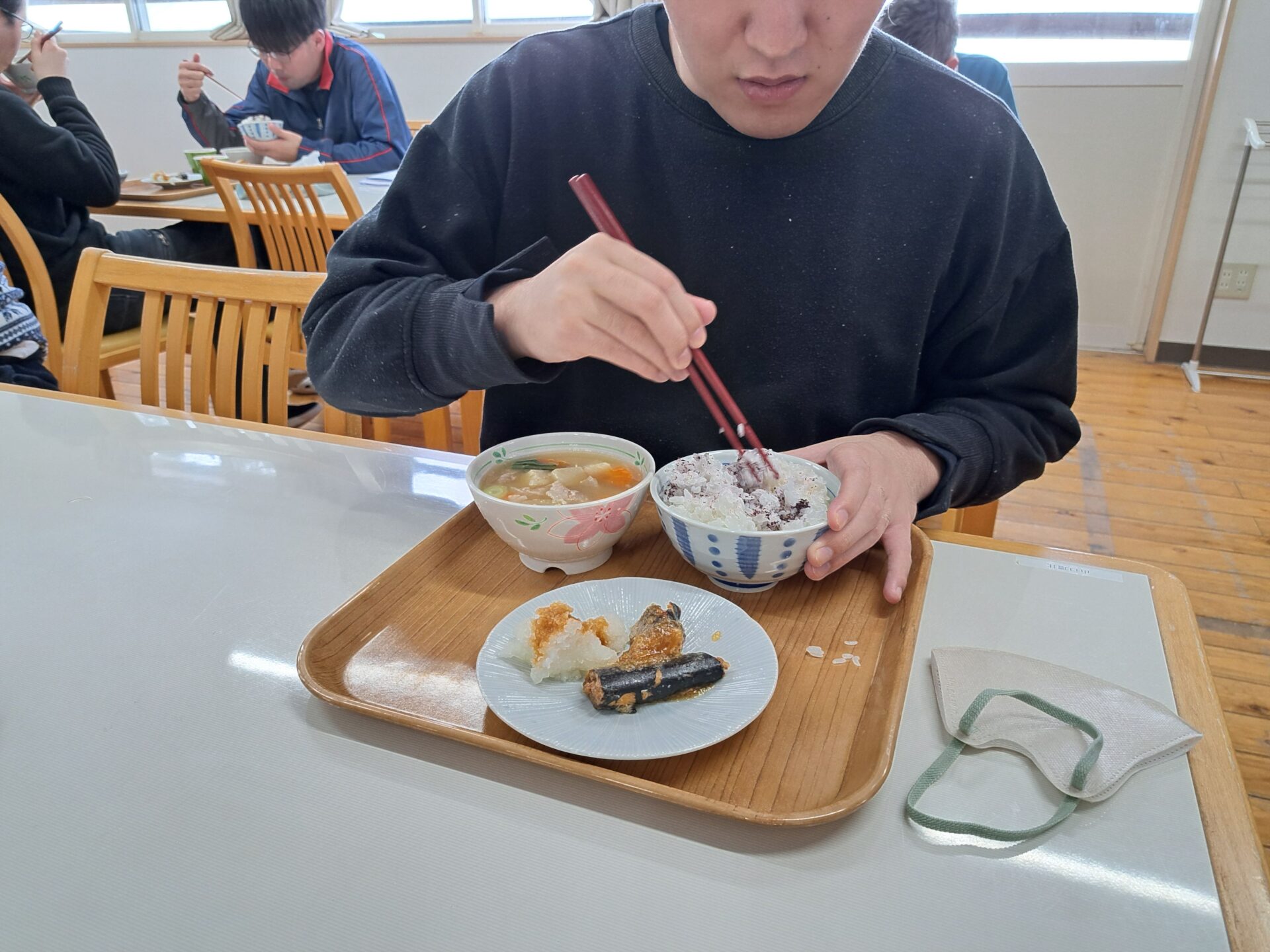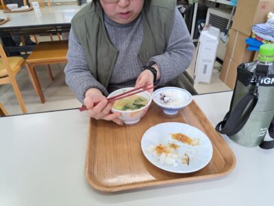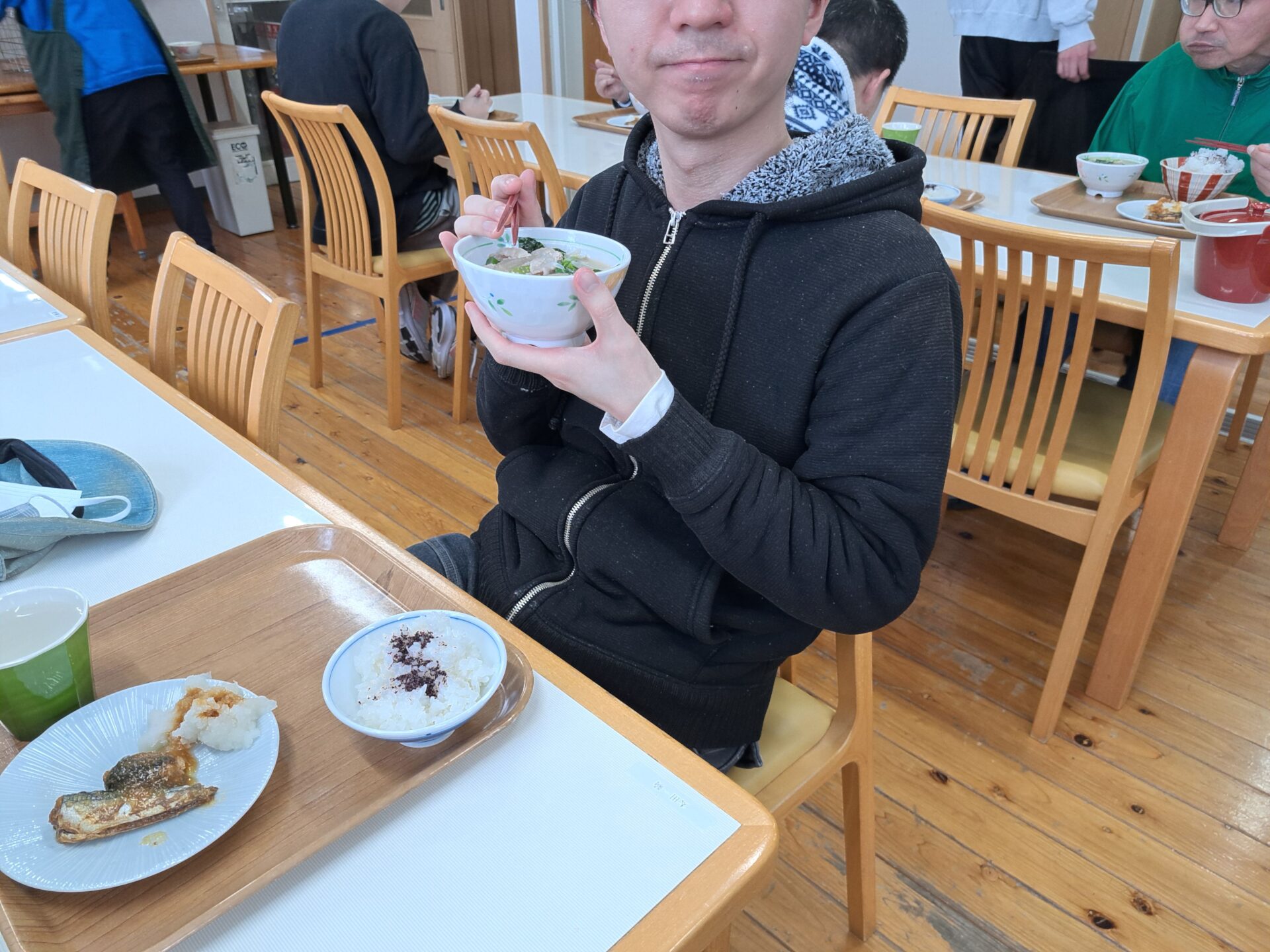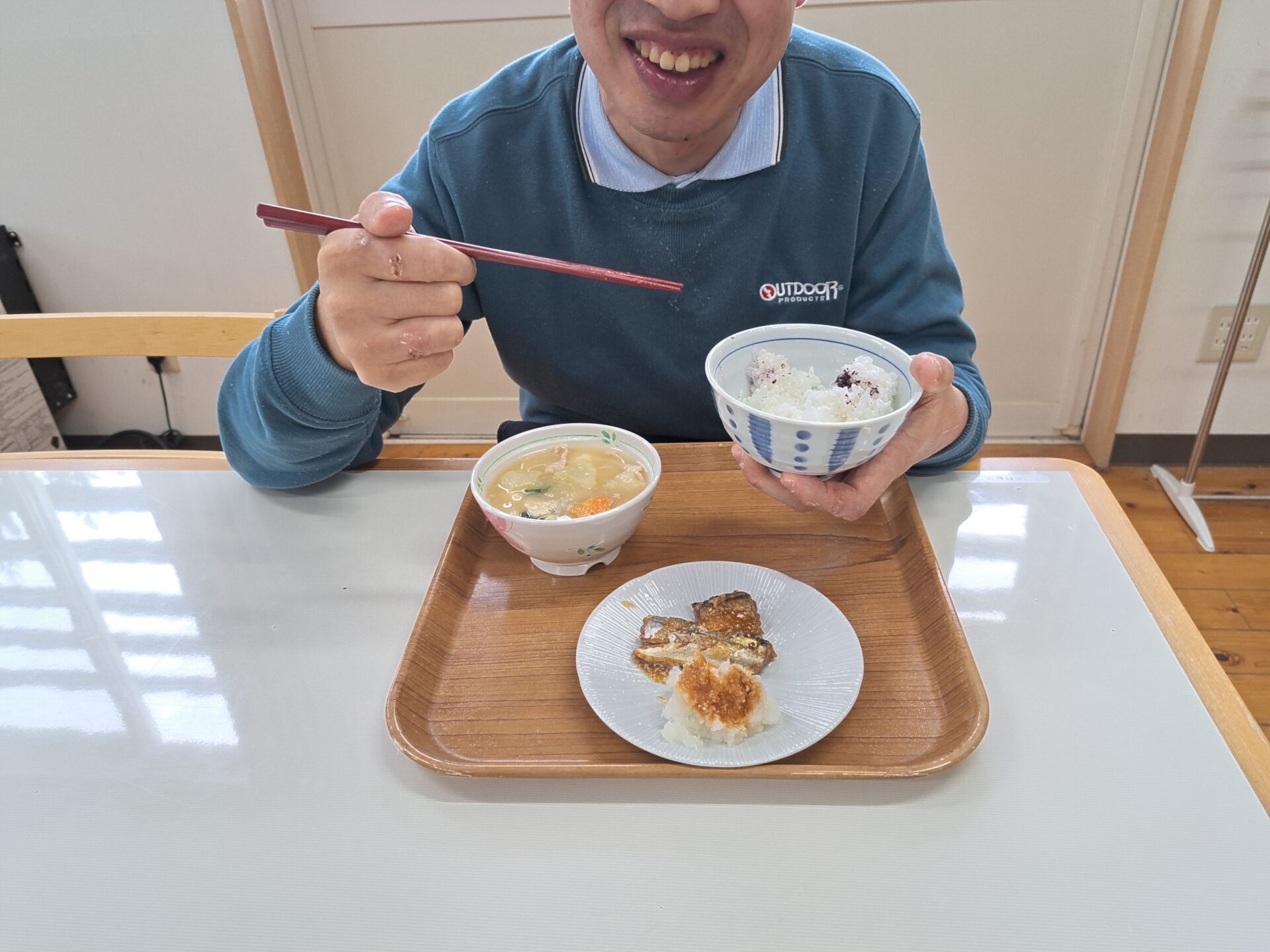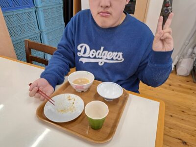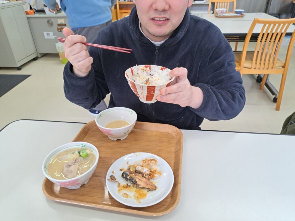 しっかりご飯を食べて免疫力アップ↑今日は豚汁と魚の甘露煮ですよ~栄養満点♪