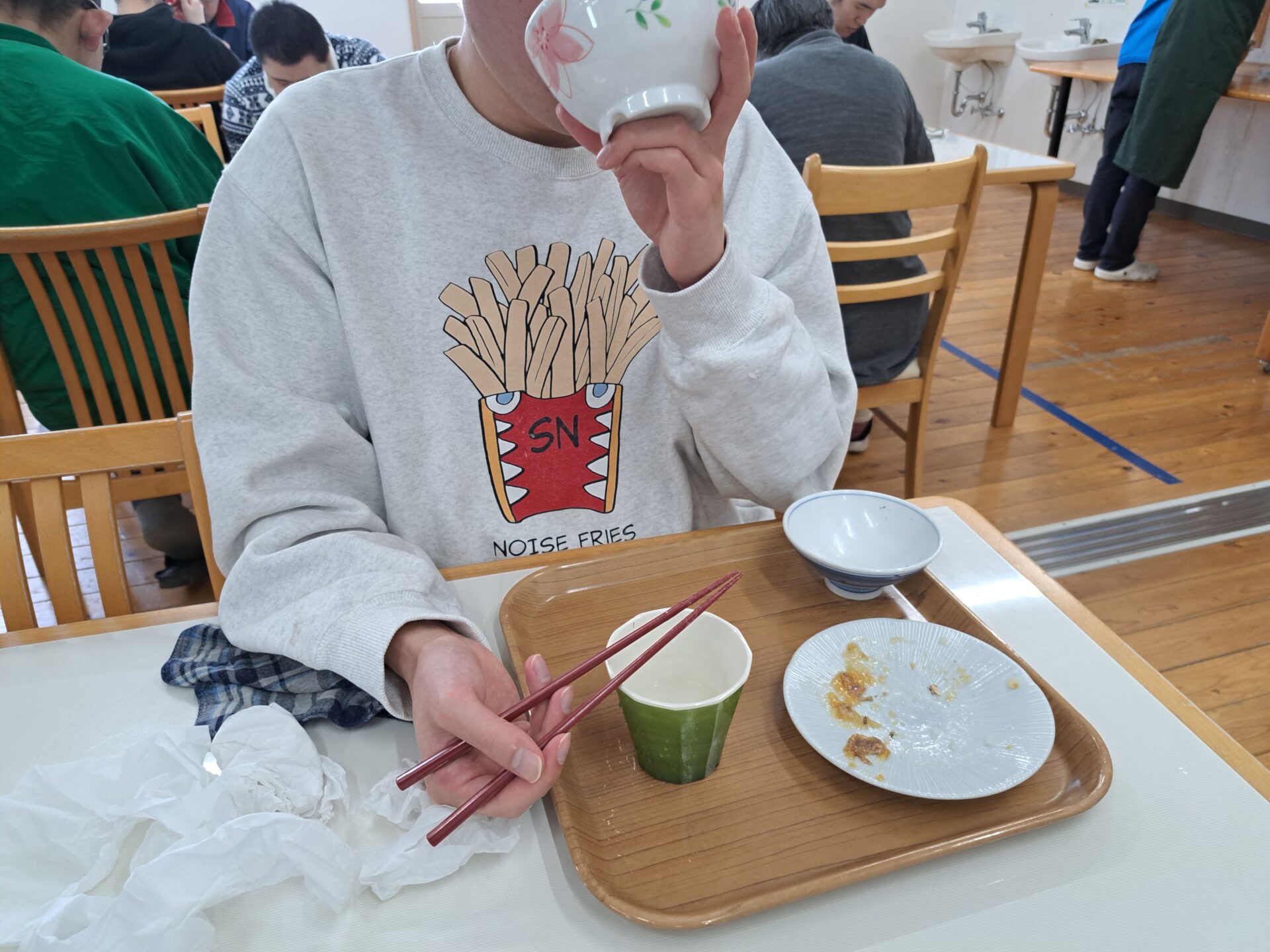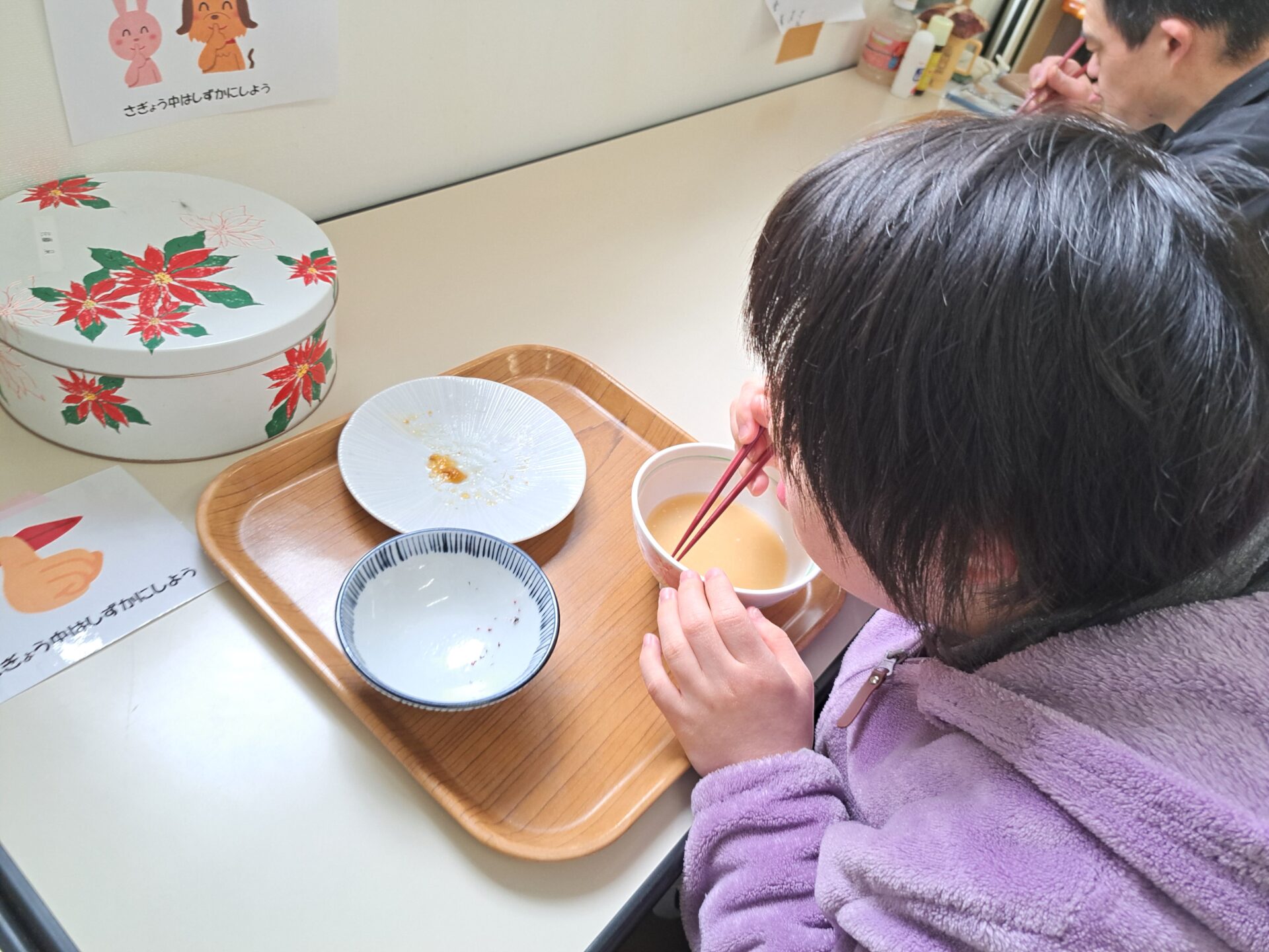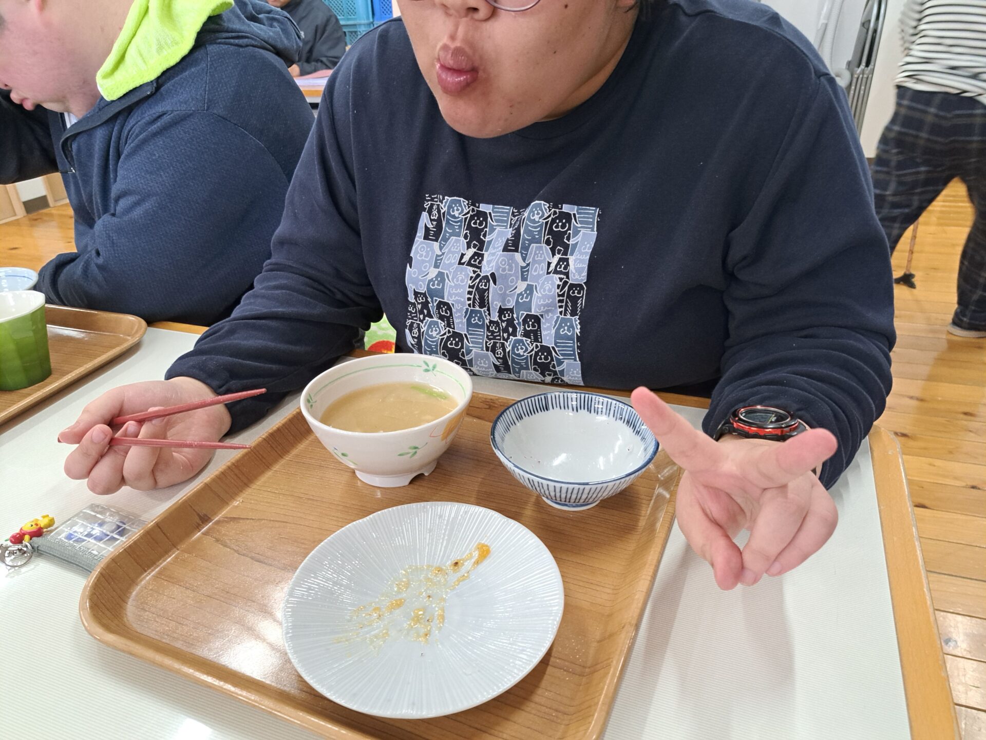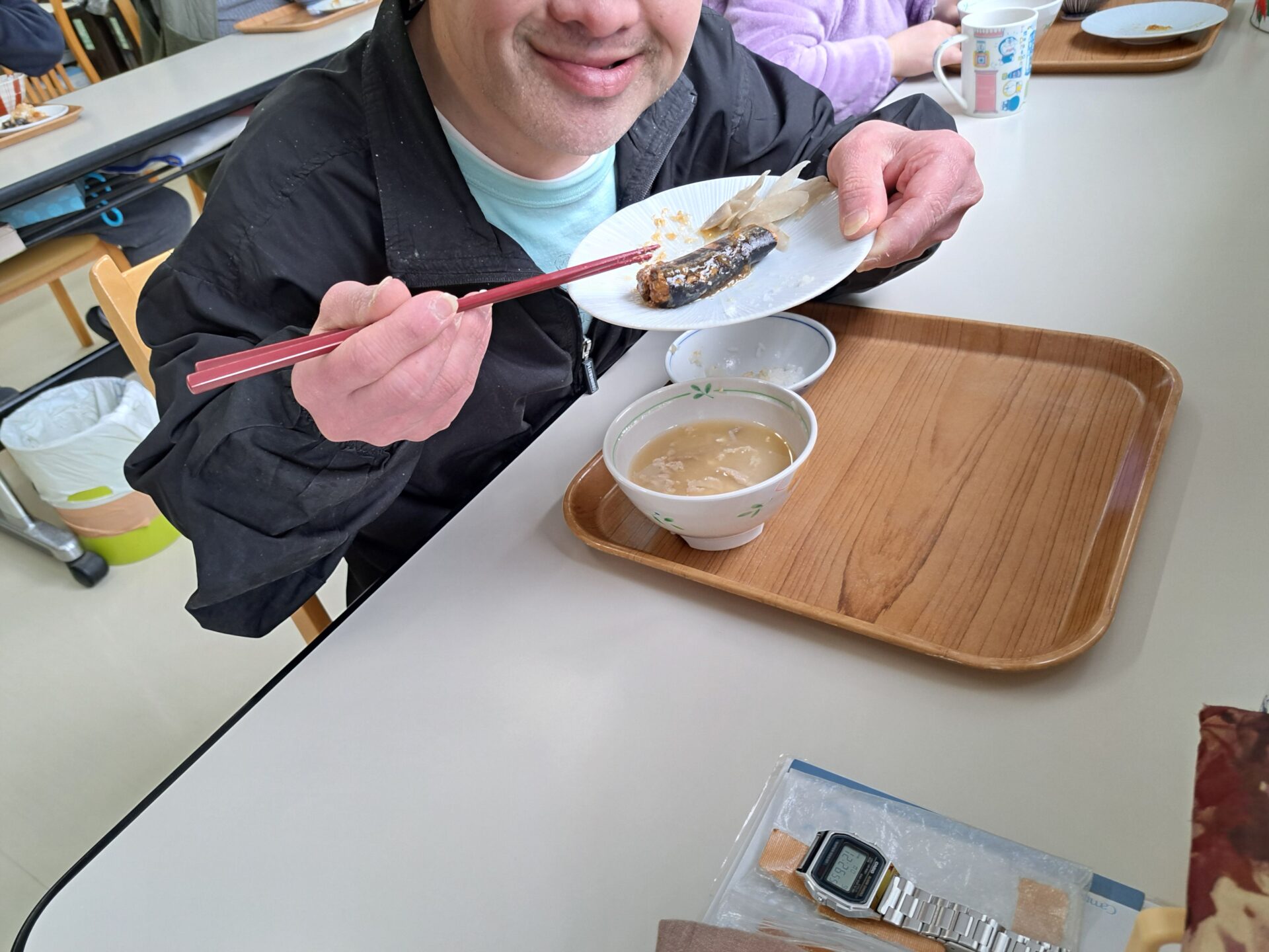 しっかりご飯を食べて免疫力アップ↑今日は豚汁と魚の甘露煮ですよ~栄養満点♪