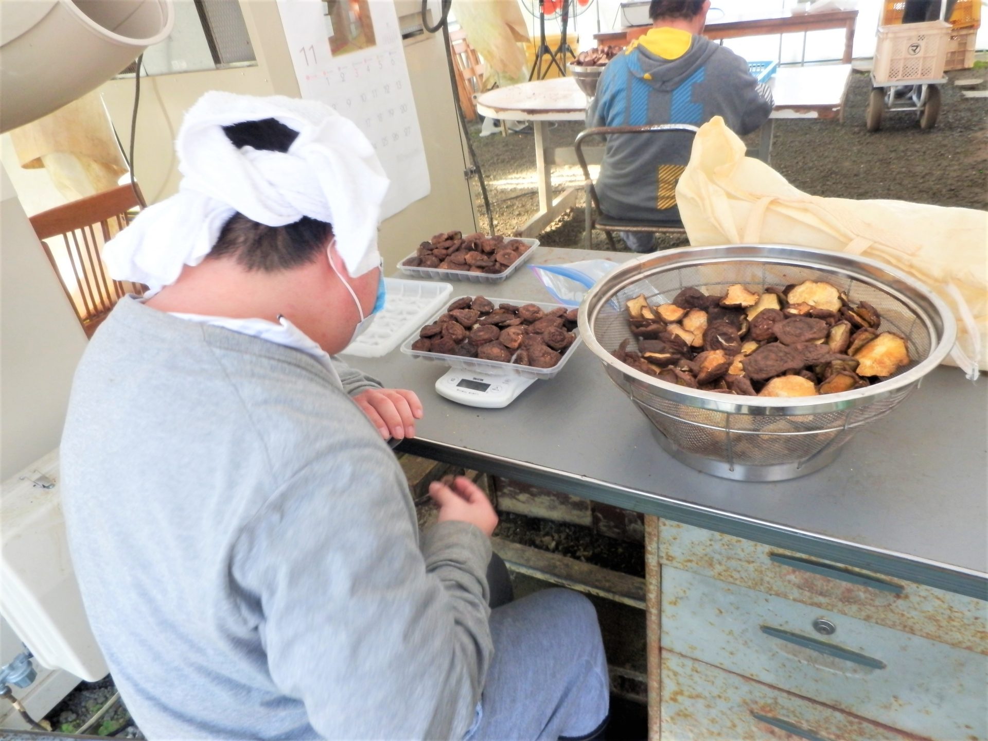 - こちらは干し椎茸の計量作業ですね~