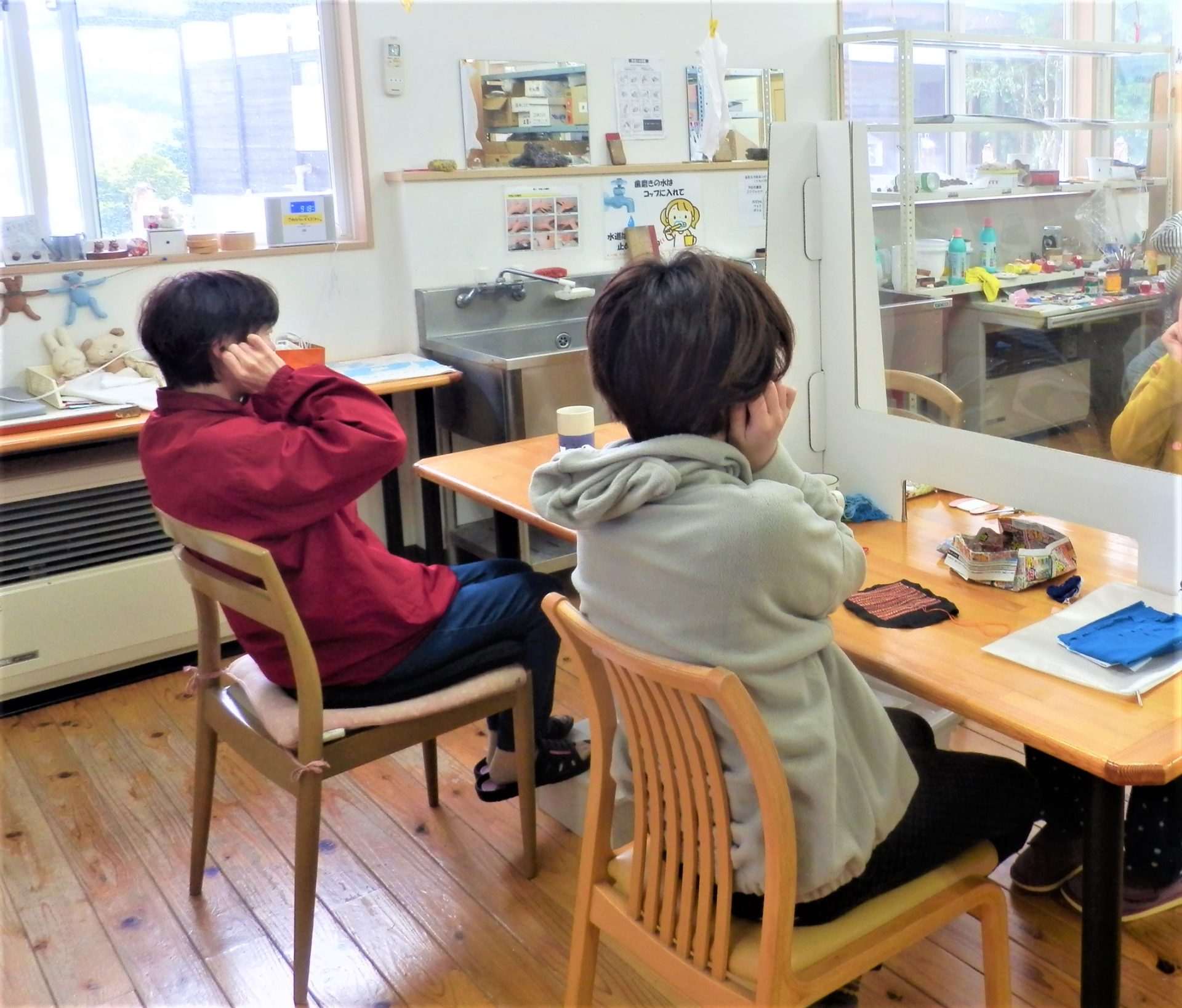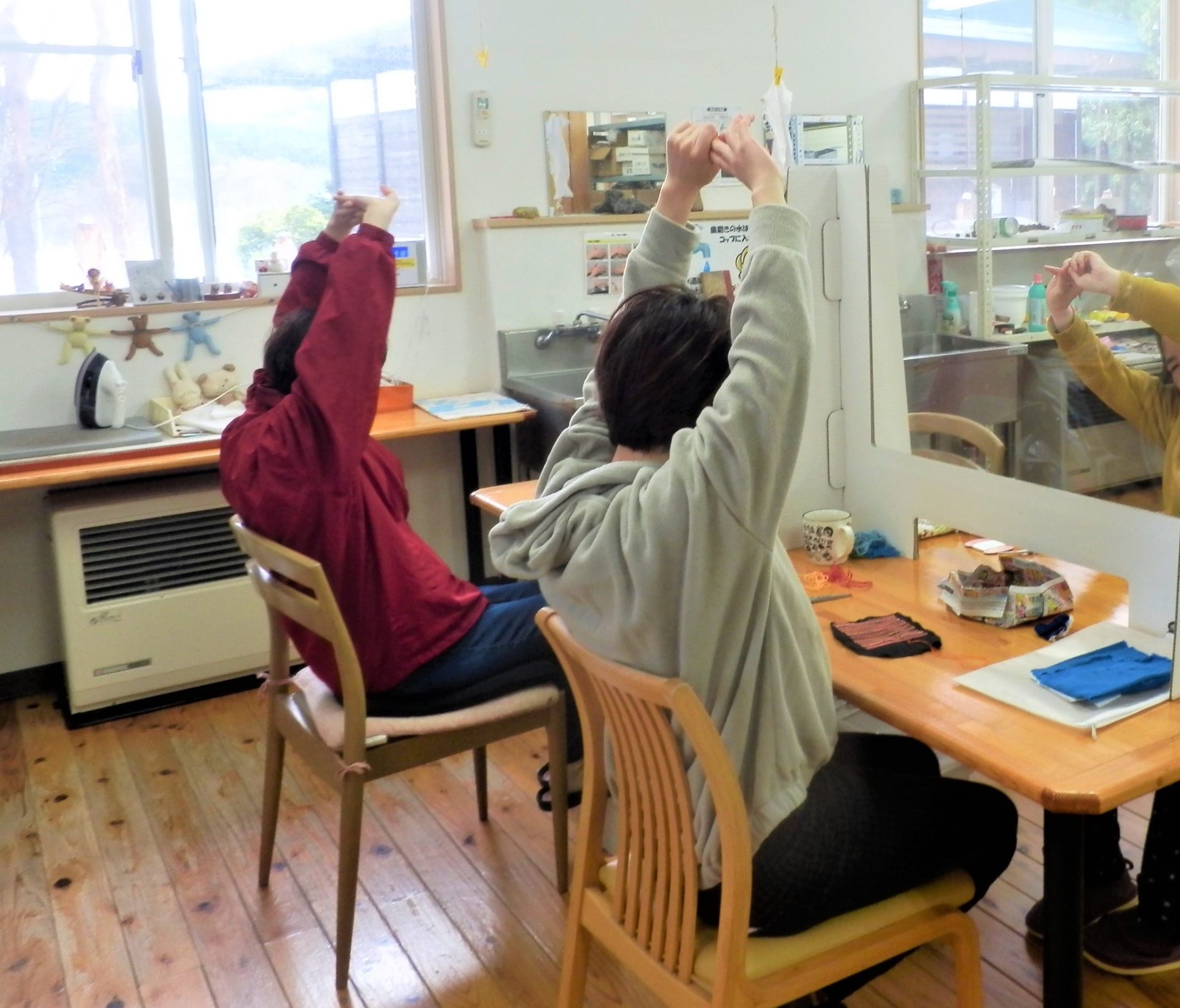 裁縫班の朝の定番スタート風景~笑顔の体操第1~♪(´▽`*)