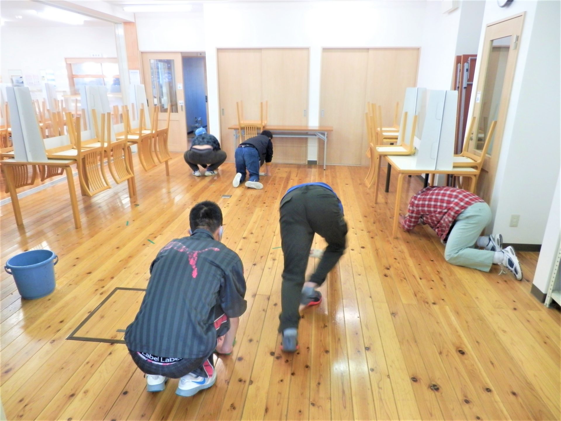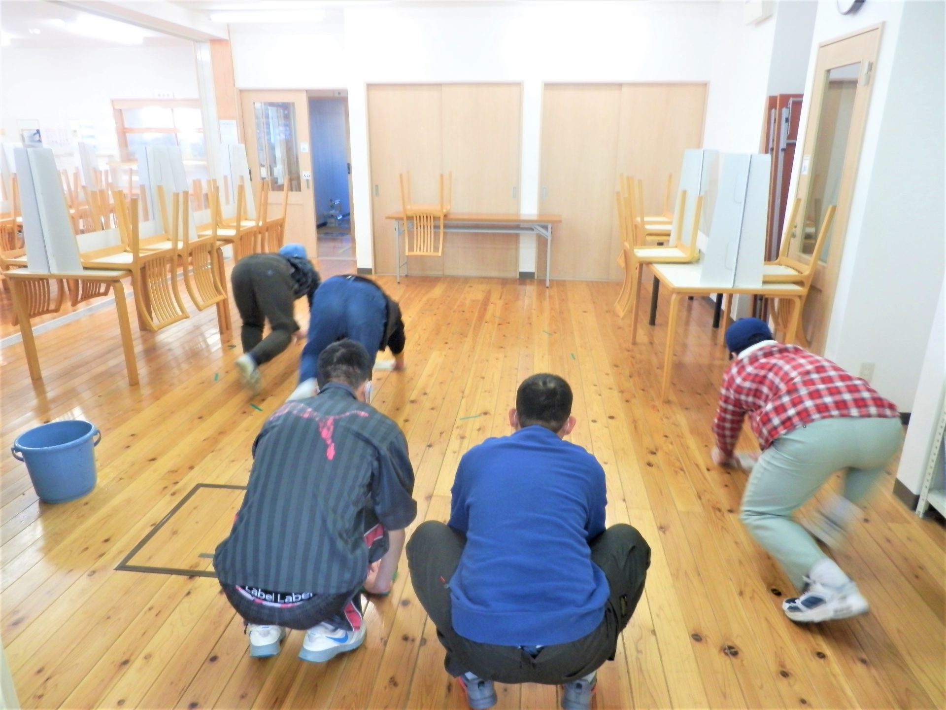 毎週(木)の農園芸班の食堂掃除風景~位置について~!(*^-^*)