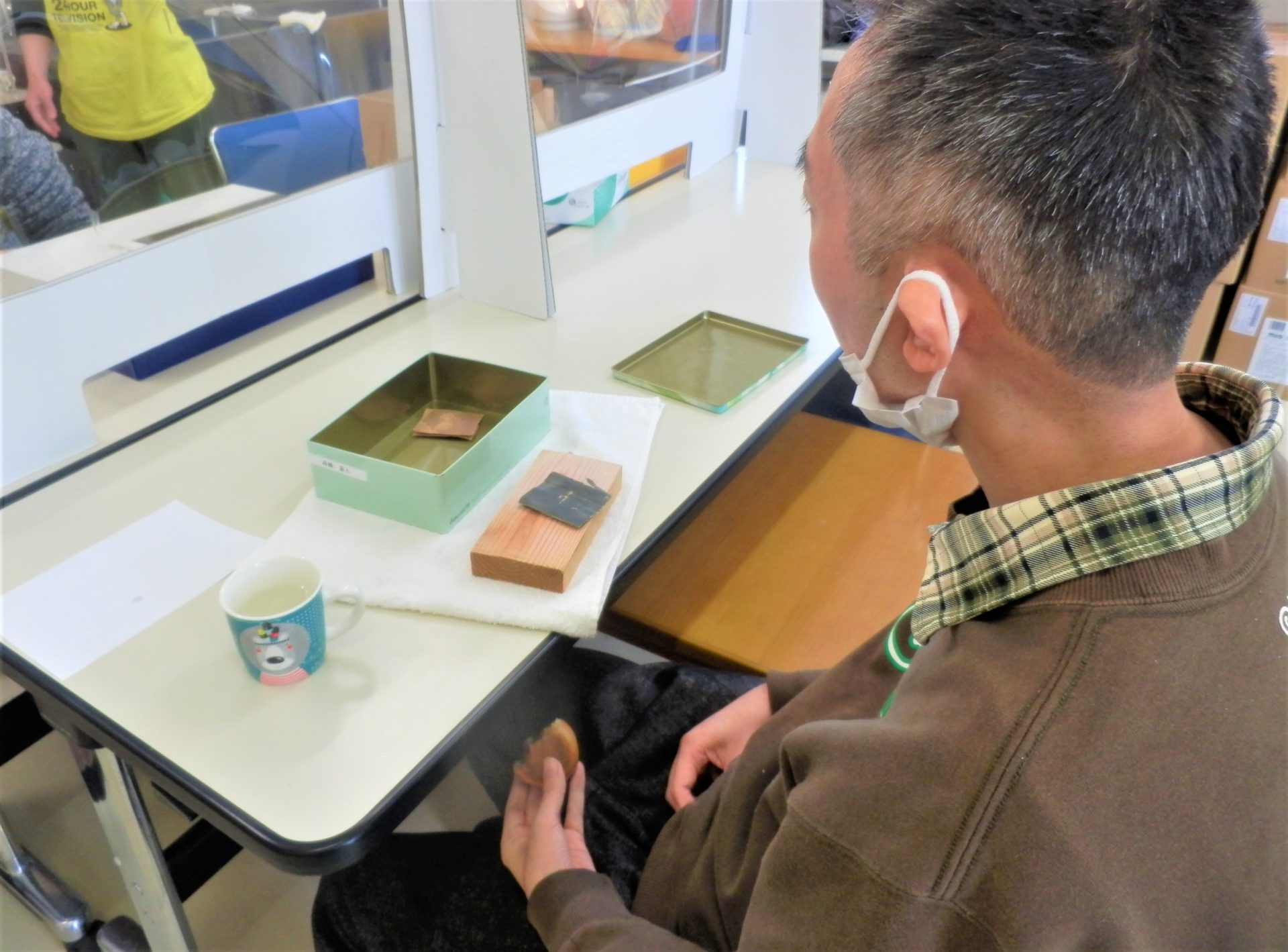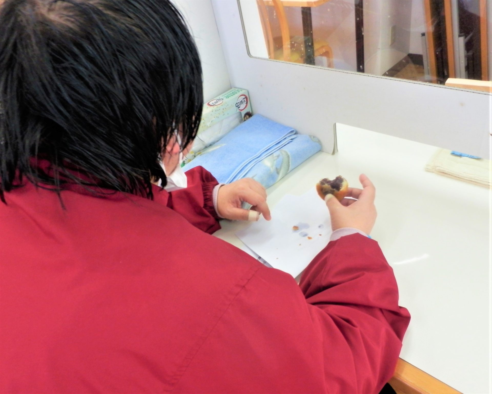 今日は利用者さんのご家庭よりお饅頭を頂いたので…