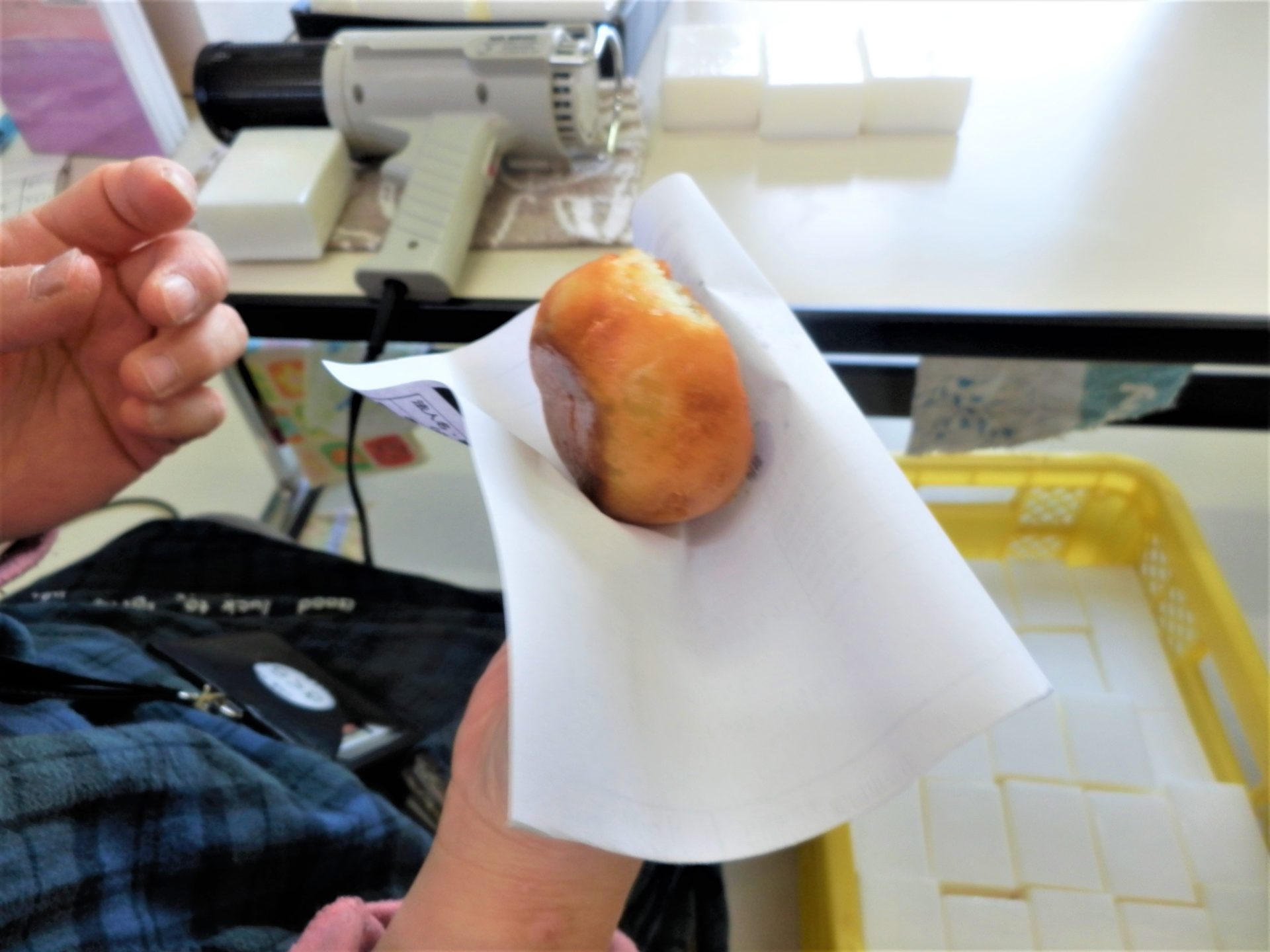 お饅頭が揚がるまで、お仕事がんばろう!