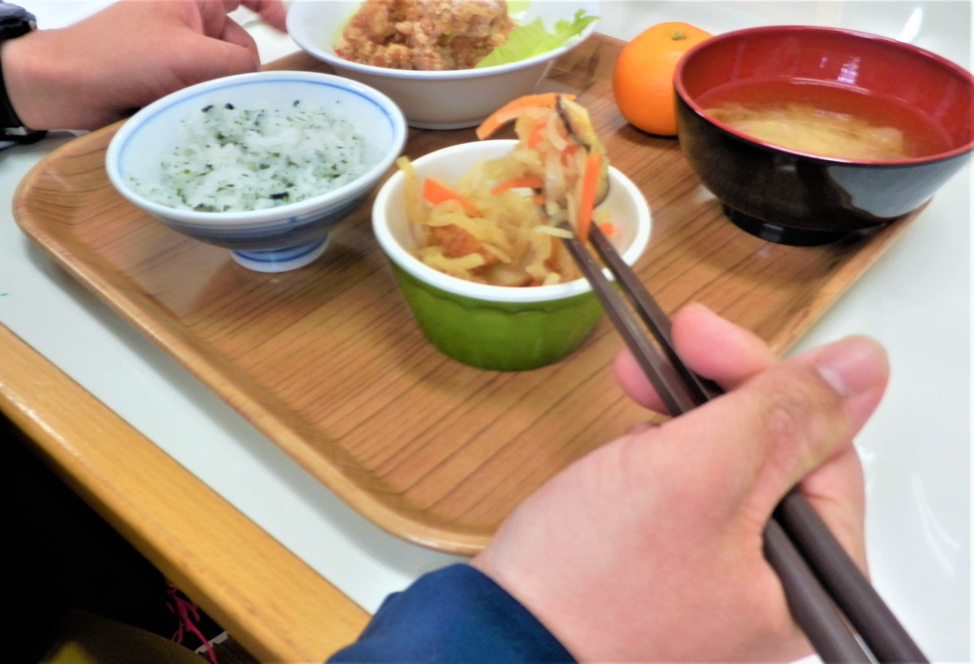 「今日もさくらが丘セットだね」と調理担当職員!