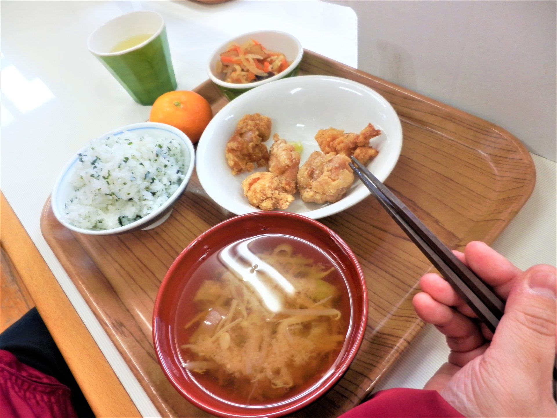 そ・し・て!磯の香漂うワカメご飯がから揚げのジューシーさとまた合うんです!