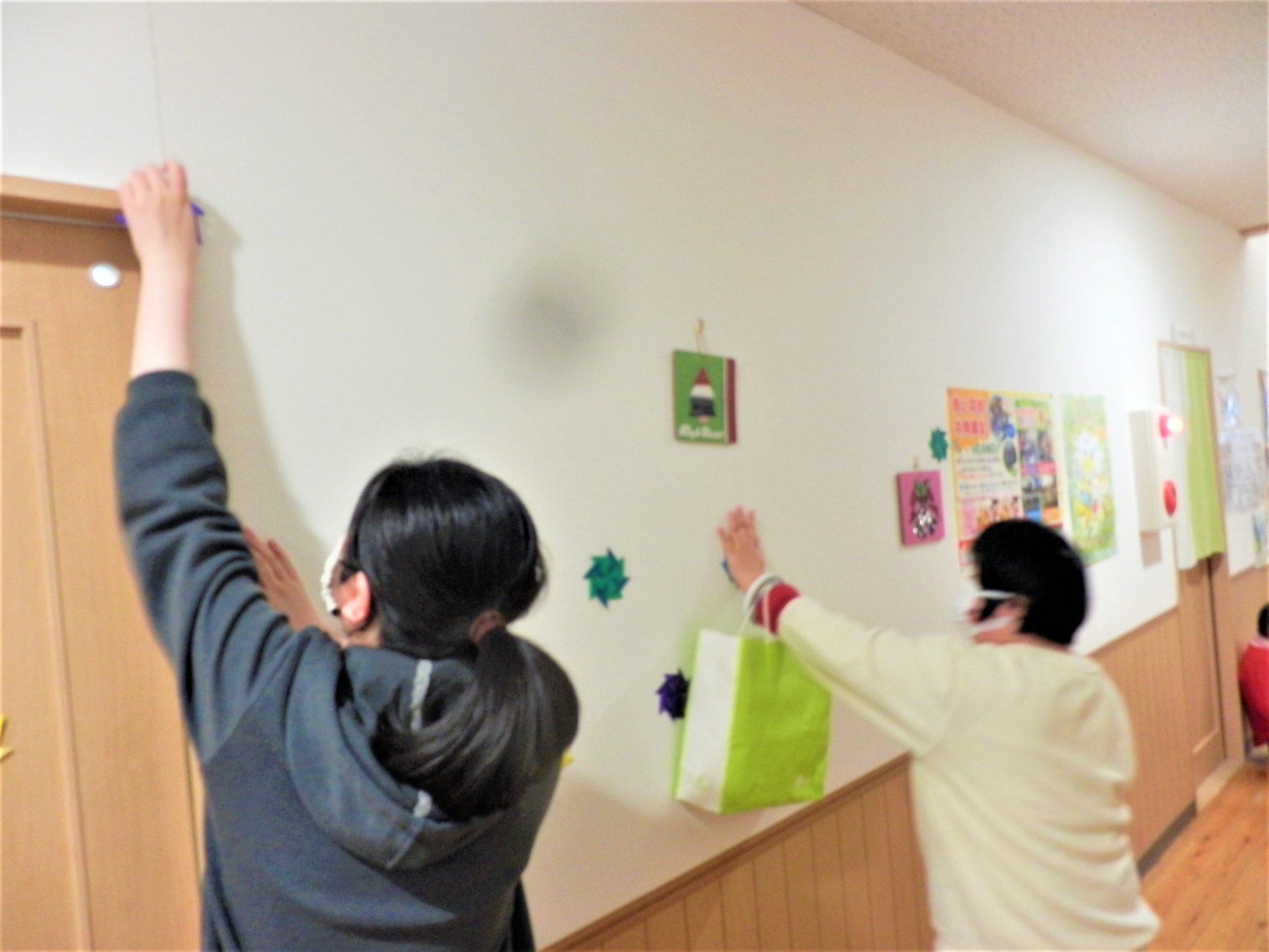 「高いところにもいっぱいつけてね~!」「はーい!!」
