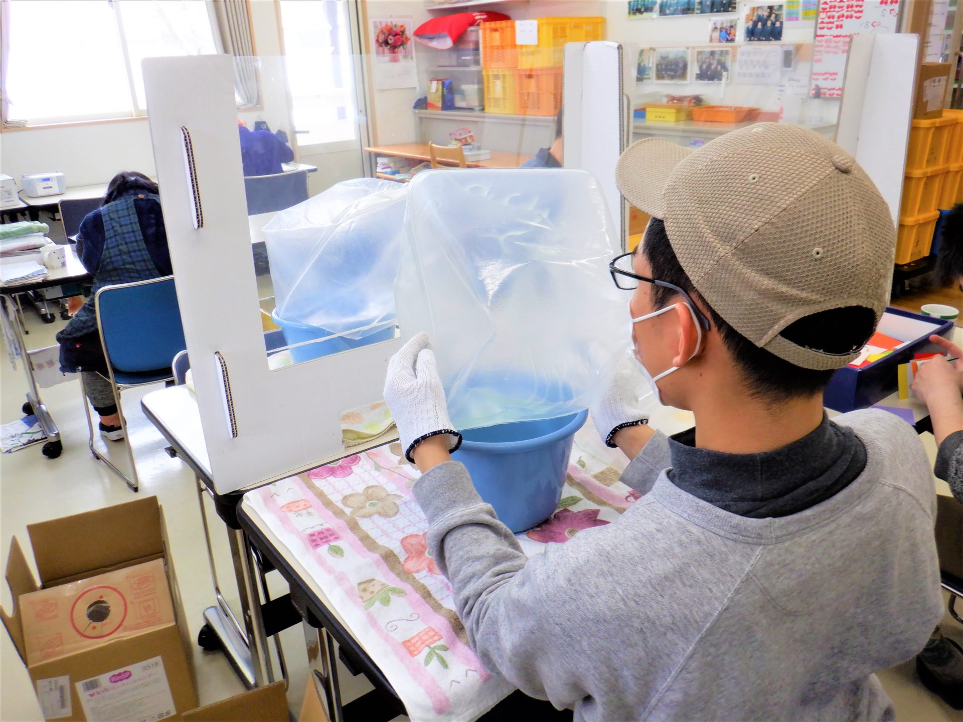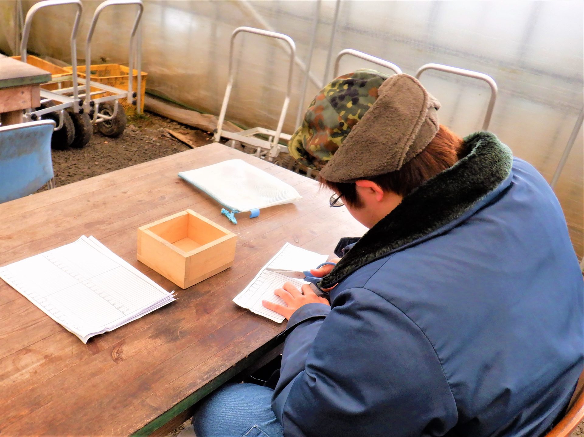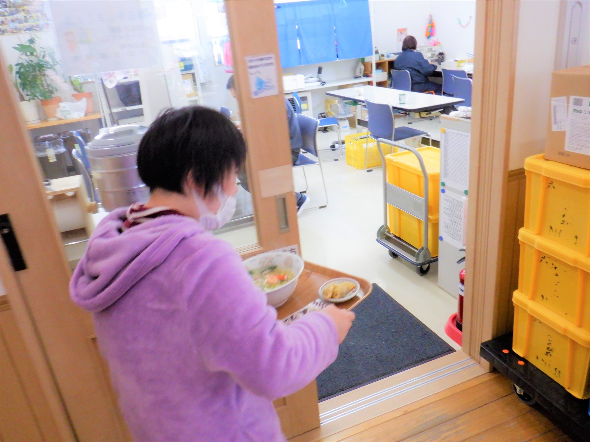 「コロナが増えて、空き缶回収に行けなくなったのが残念だの~(今日からフェーズ2に引き上げ…)外に出る仕事が好きだから、車に乗って降りて空き缶回収したり動く仕事が好き~(「え?!」斜め向かいの利用者さんがすごくビックリした顔をしてる…(笑))~19歳でここにきて、最初は農園芸でしいたけとか冬は除雪してたからの~今は除雪なんてしないけど~(笑)」