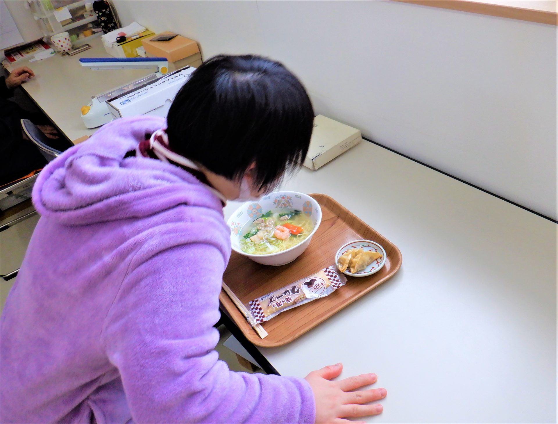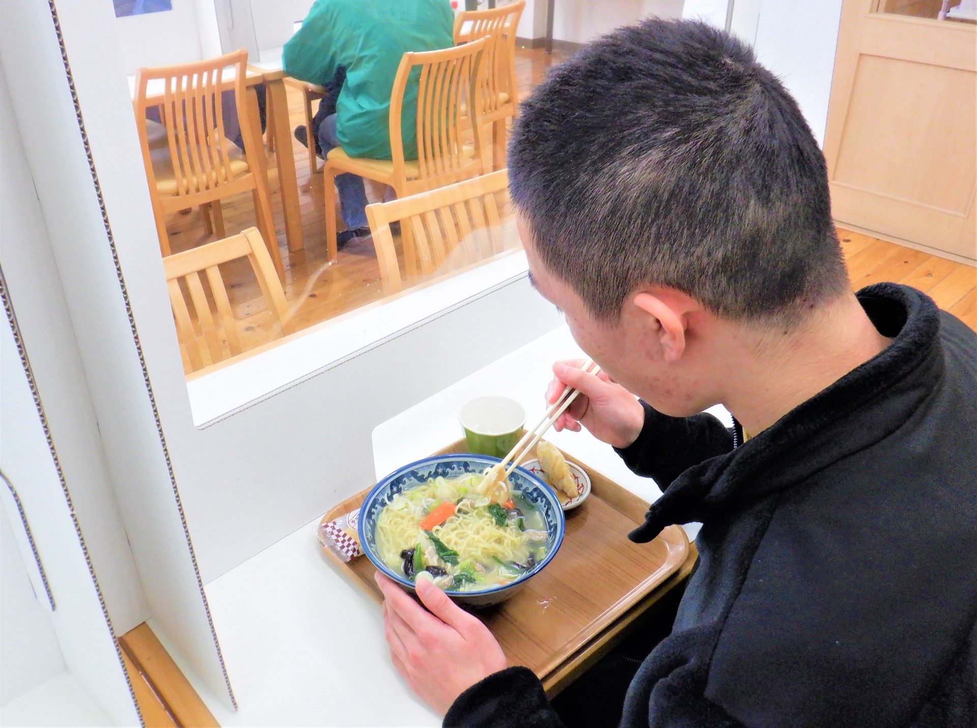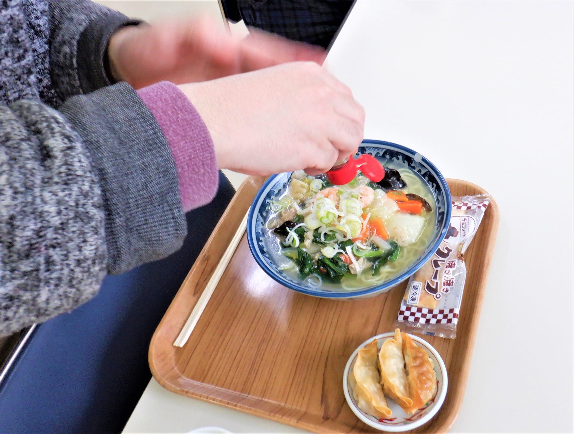 調理担当職員によると、余目の「あじ彩」さんの「エビ塩ラーメン」を参考にしたんだそうです~!