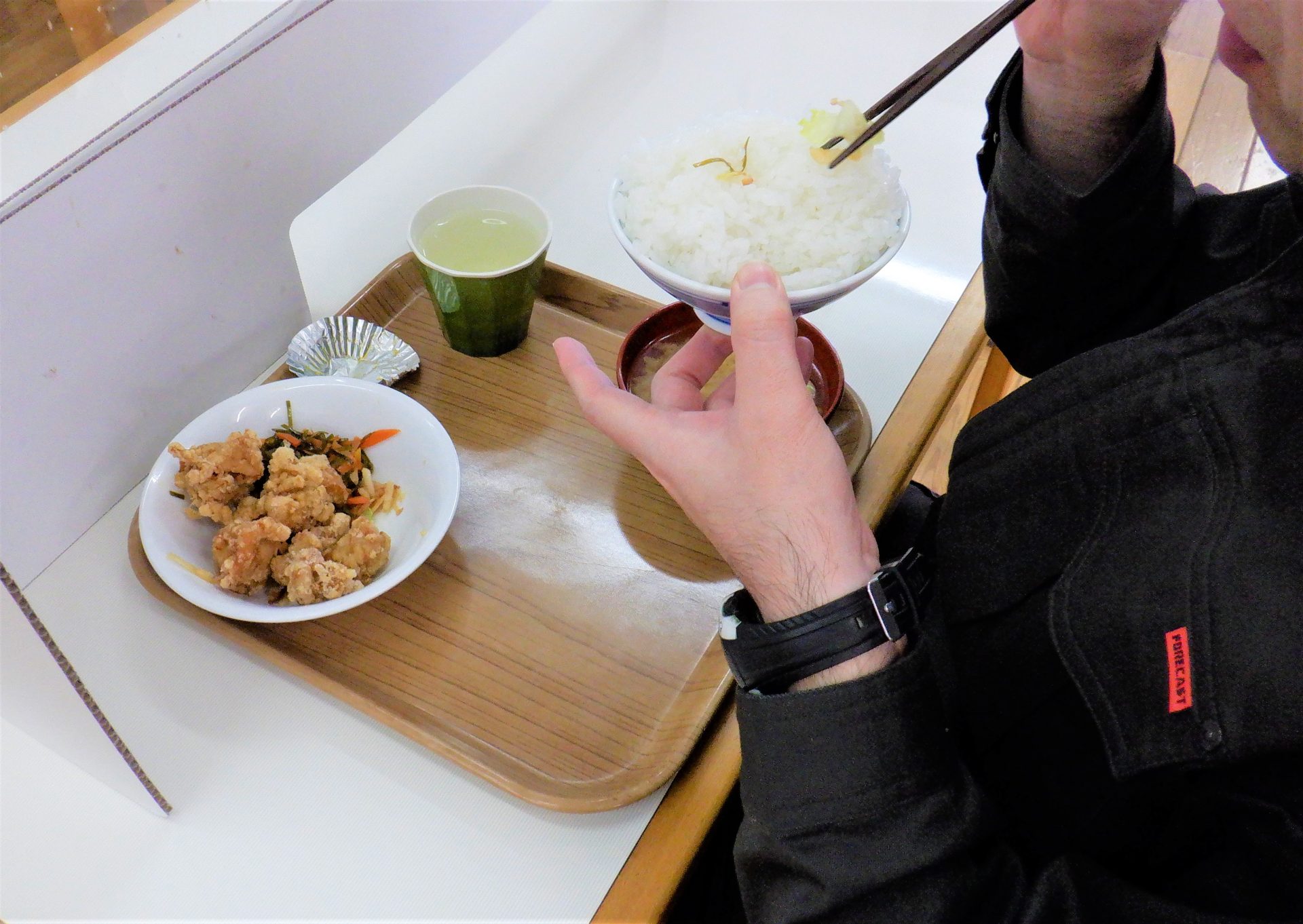 - 「こちらはから揚げ乗っけてる?」