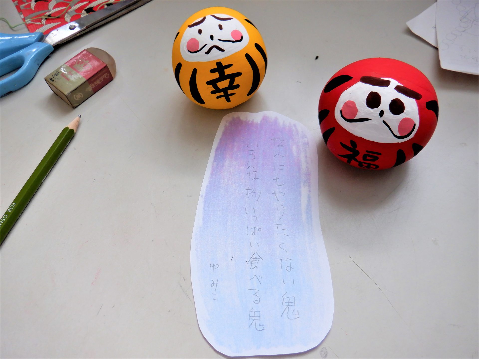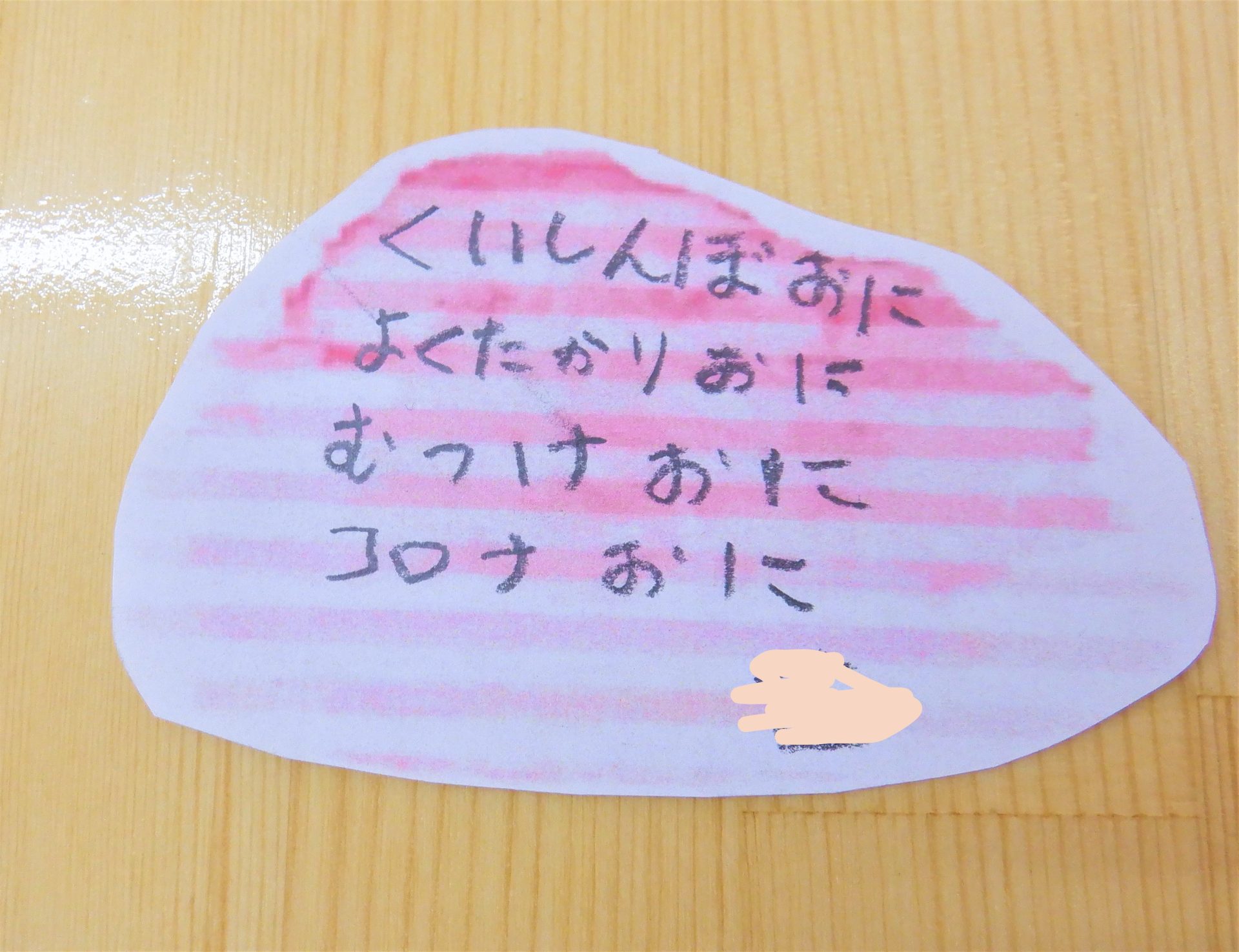 休み前に利用者さんに「自分の退治したい鬼は?」というテーマで「〇〇鬼」というカードを書いてもらったのでご紹介します(^^♪