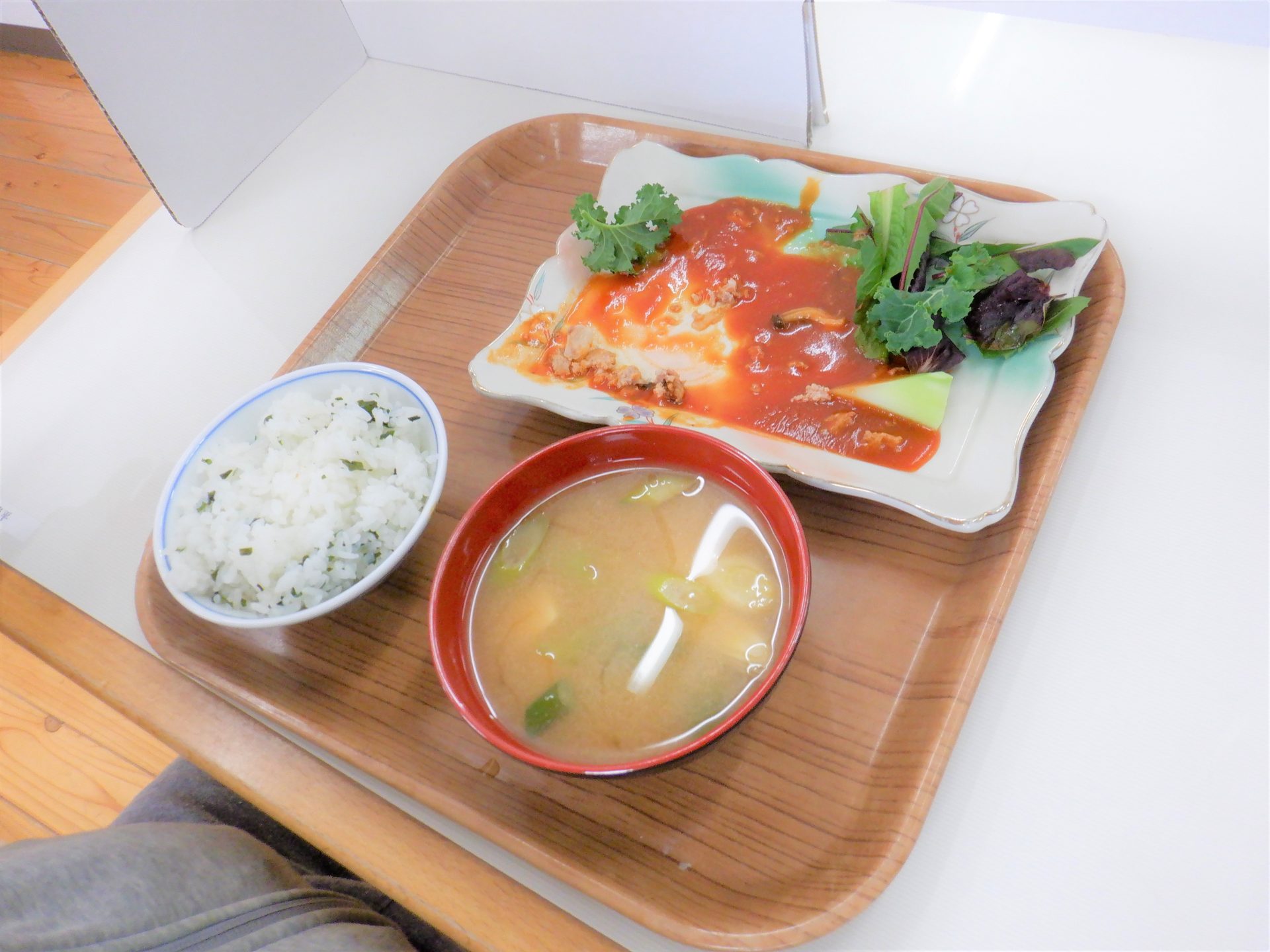 - 「白飯となめこ汁とシュウマイでしたの~」