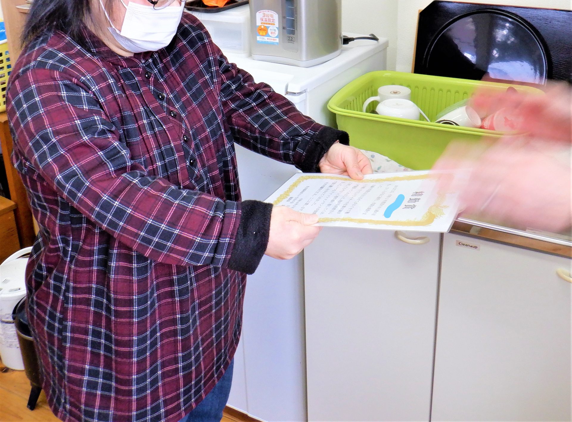 まずは1日しかお休みしなかった利用者さんに精勤賞を授与♪