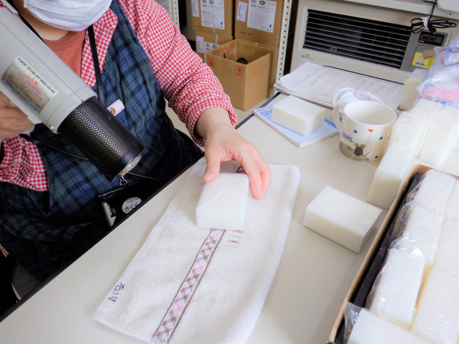 農園芸班で「あぐり」さんに納品に行くと言うので、その道中…裁縫班で最近仕上げた巾着を「グー」さんにも納品してもらうことにしました~いそいでラッピングしなきゃ~(;^_^A