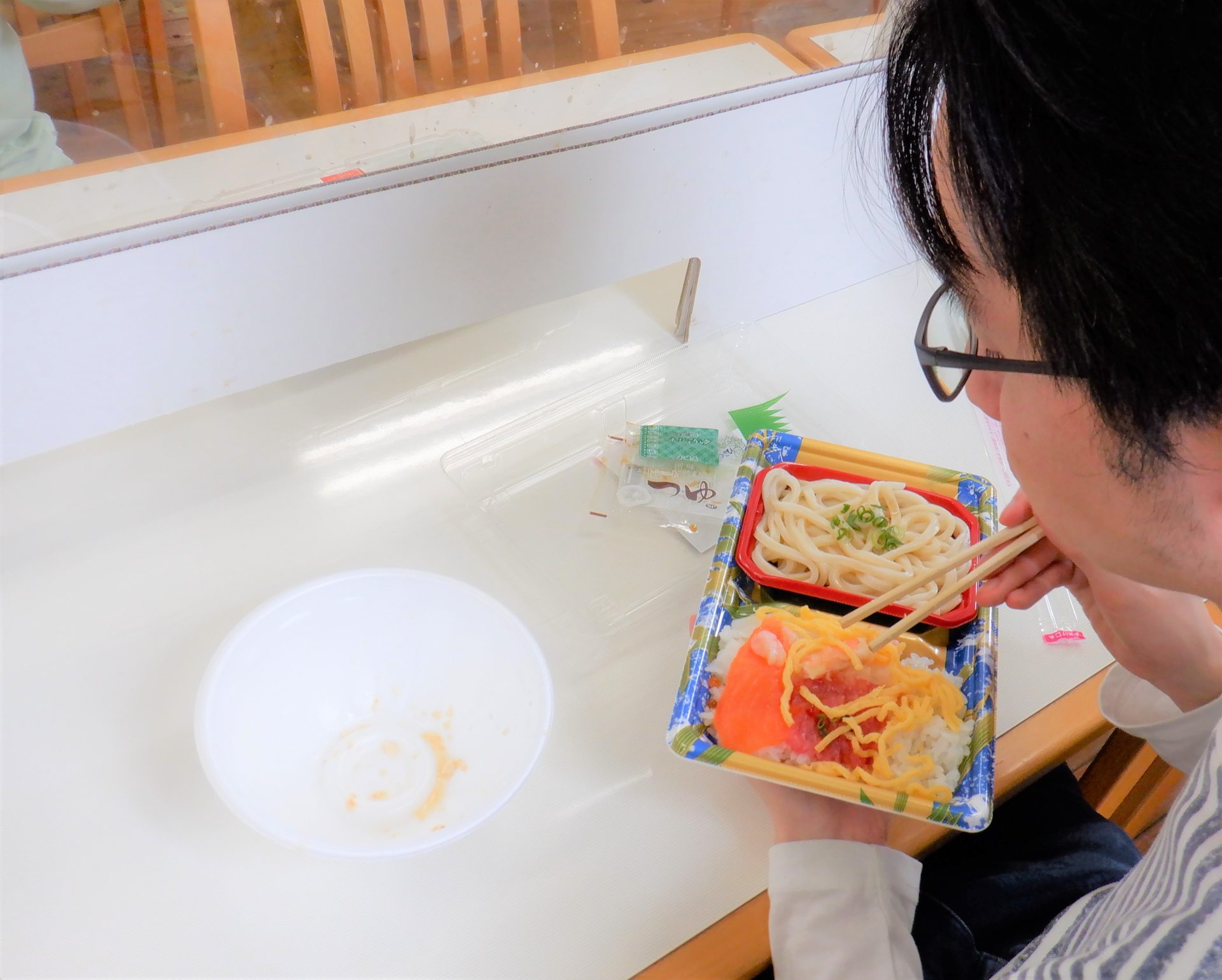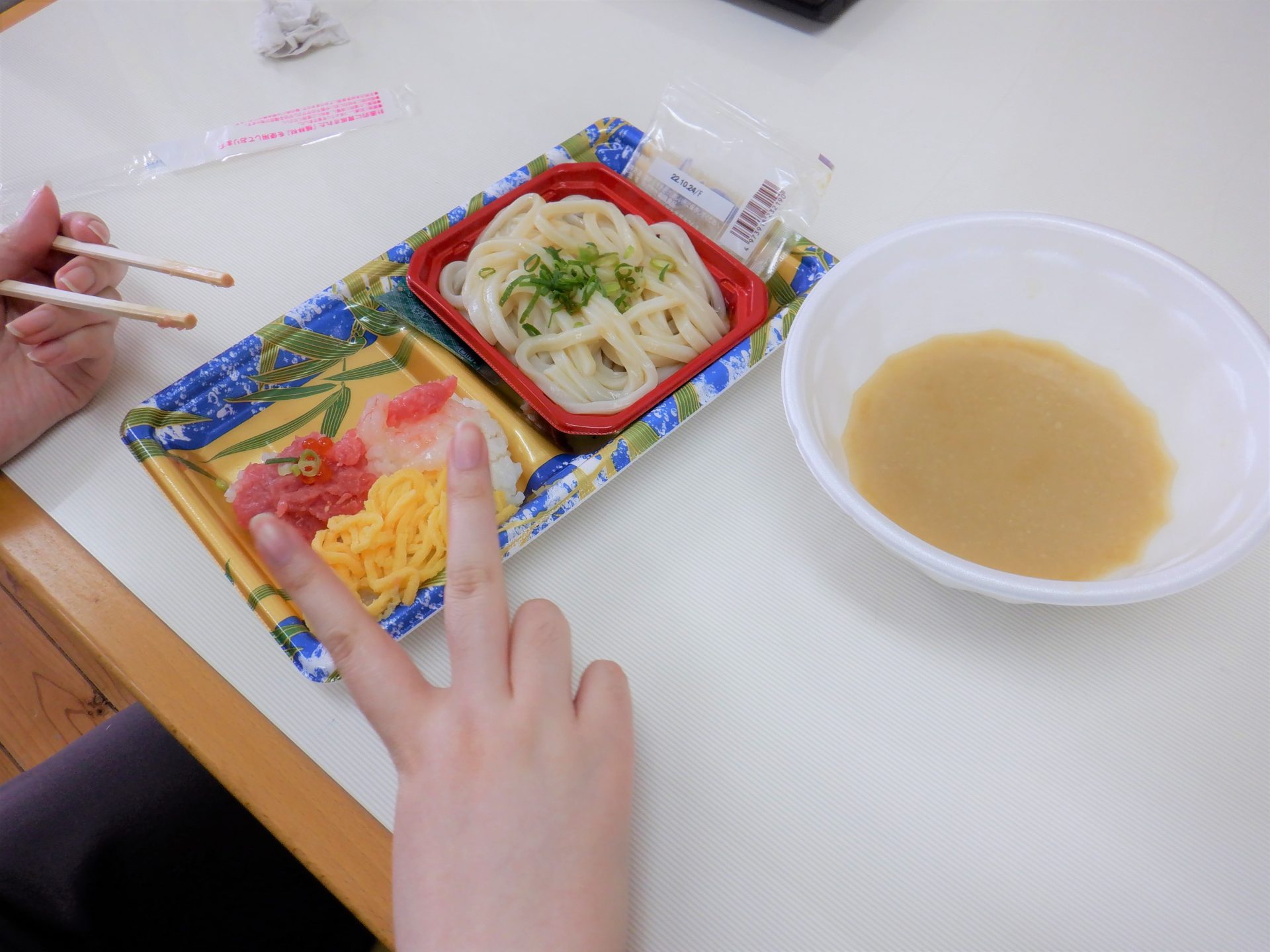 じゃ~ん!うどん&海鮮丼弁当と孟宗汁~♪豪華!!