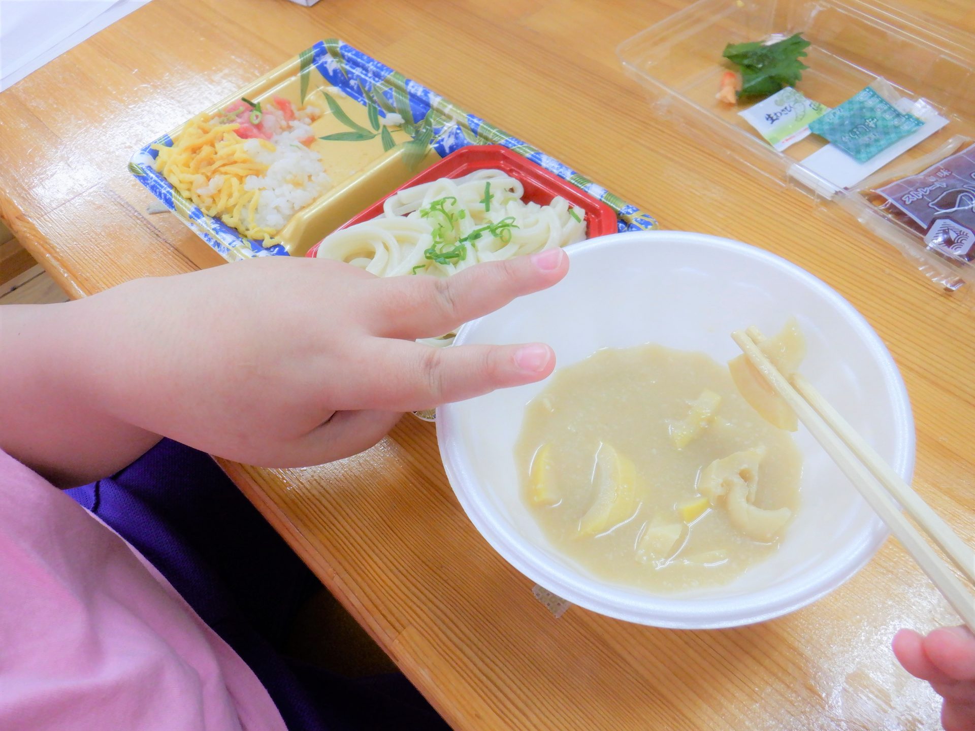 今日は給食がお休みでお弁当なのですが、なんと玉川寺さんから孟宗汁を提供してい頂けることになったのです~( *´艸`)